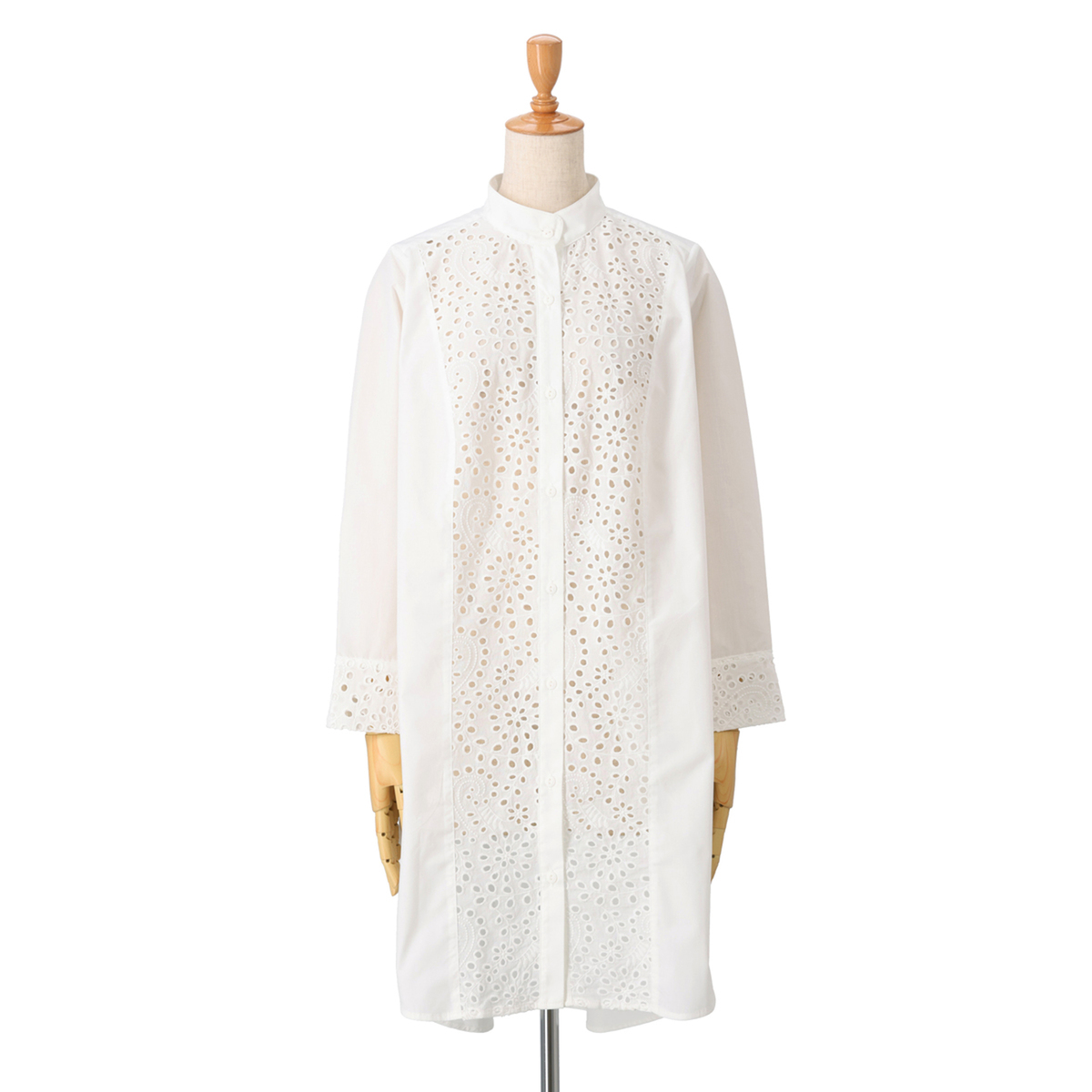 [商品寸法(ヌード)cm] サイズ バスト 着丈 肩幅 袖丈 00 : 98(74〜86) 97.5 37 54 0 : 108(84〜96) 98 38 54 1 : 118(94〜106) 99 40 54 2 : 130(104〜116)100 42 54 3 : 142(114〜126)100.5 44 54 [素材] 本体:ポリエステル90% 綿10% レース部分:綿100% [お手入れ] 洗濯機洗い可 [注意事項] ※商品寸法の誤差は多少発生します。ご了承下さい ※淡色製品には蛍光増白剤入り洗剤を使用しないで下さい ※付属部分にアイロンを当てないで下さい ※デリケートな素材を使用していますので、爪やアクセサリーなどの引っ掛かりによりキズがつきやすくなっております。縫目や生地を強く引っ張らないよう注意して下さい ※洗濯後はすぐに脱水し、形を整えて干して下さい。長時間、水につけたままにしないで下さい ※刺繍部分は、糸端が飛び出ている箇所があります。着用、洗濯・クリーニングにより多少ほつれが生じることがありますのでご了承下さい ※直射日光や蛍光灯の影響で変色することがありますのでご了承下さい ※濃色製品は着用中の摩擦により色移りすることがあります。また、雨や汗等で濡れた状態で着用すると色移りすることがあります。その際はお早めに洗濯をして下さい ※洗濯やクリーニングにより徐々に色あせします。また、色落ちすることがありますので、他の物と分けて洗って下さい ※柄の出方は商品によって異なります 【中国製】