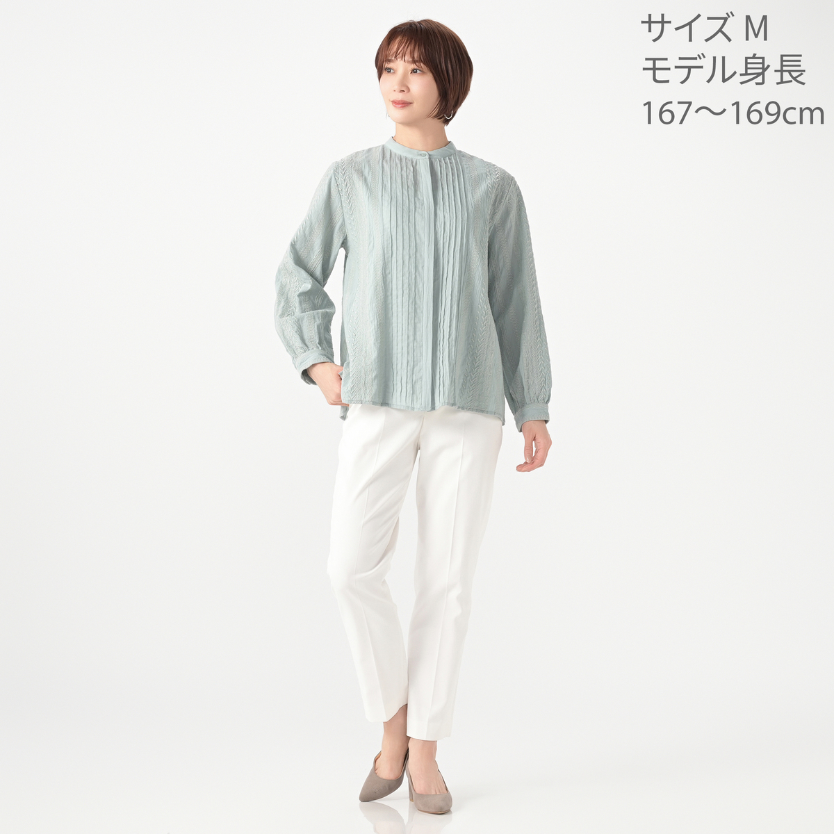 No. 740112 タカシマヤスタイルプリュ ピンタック入り刺しゅうブラウス