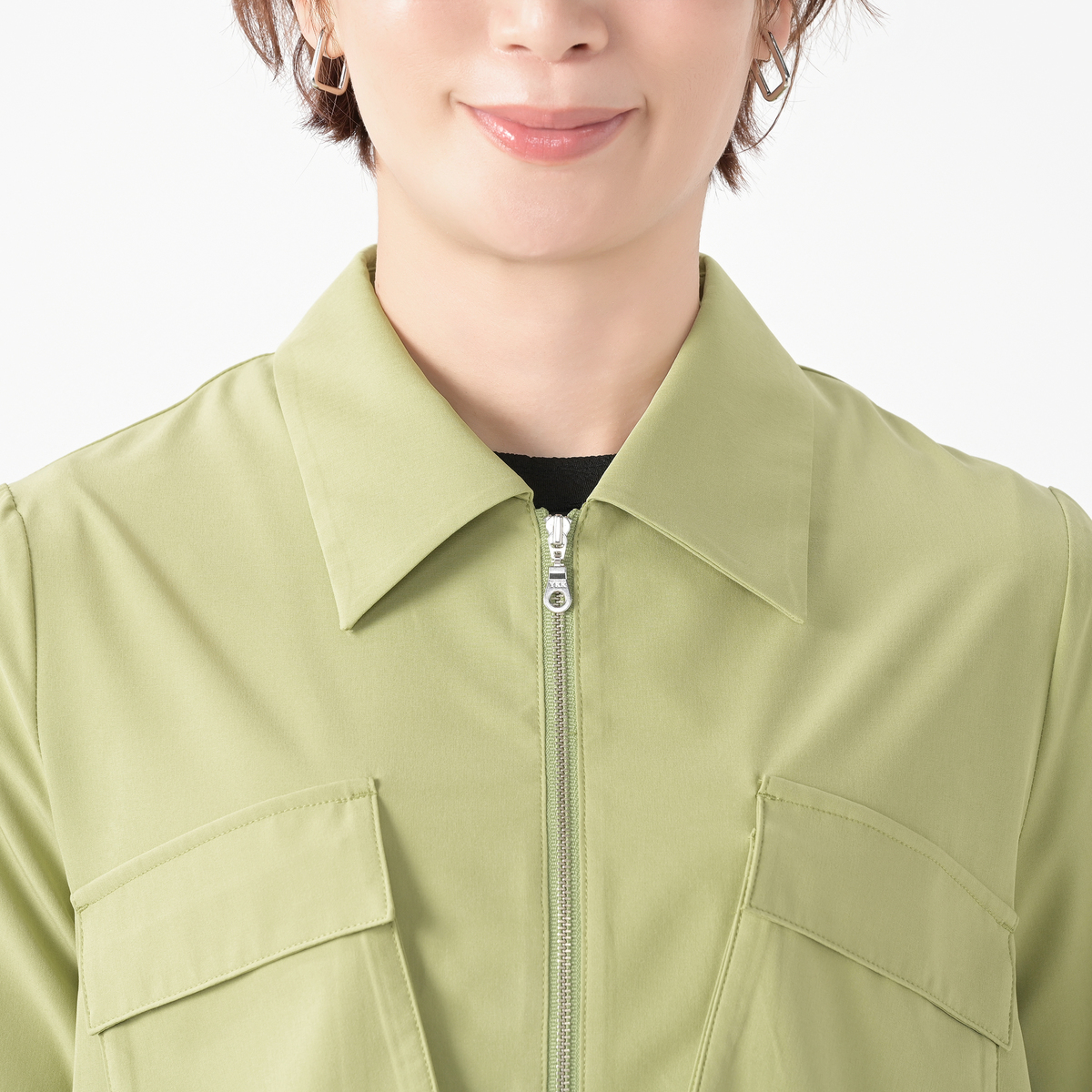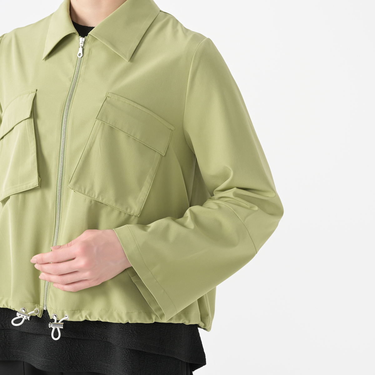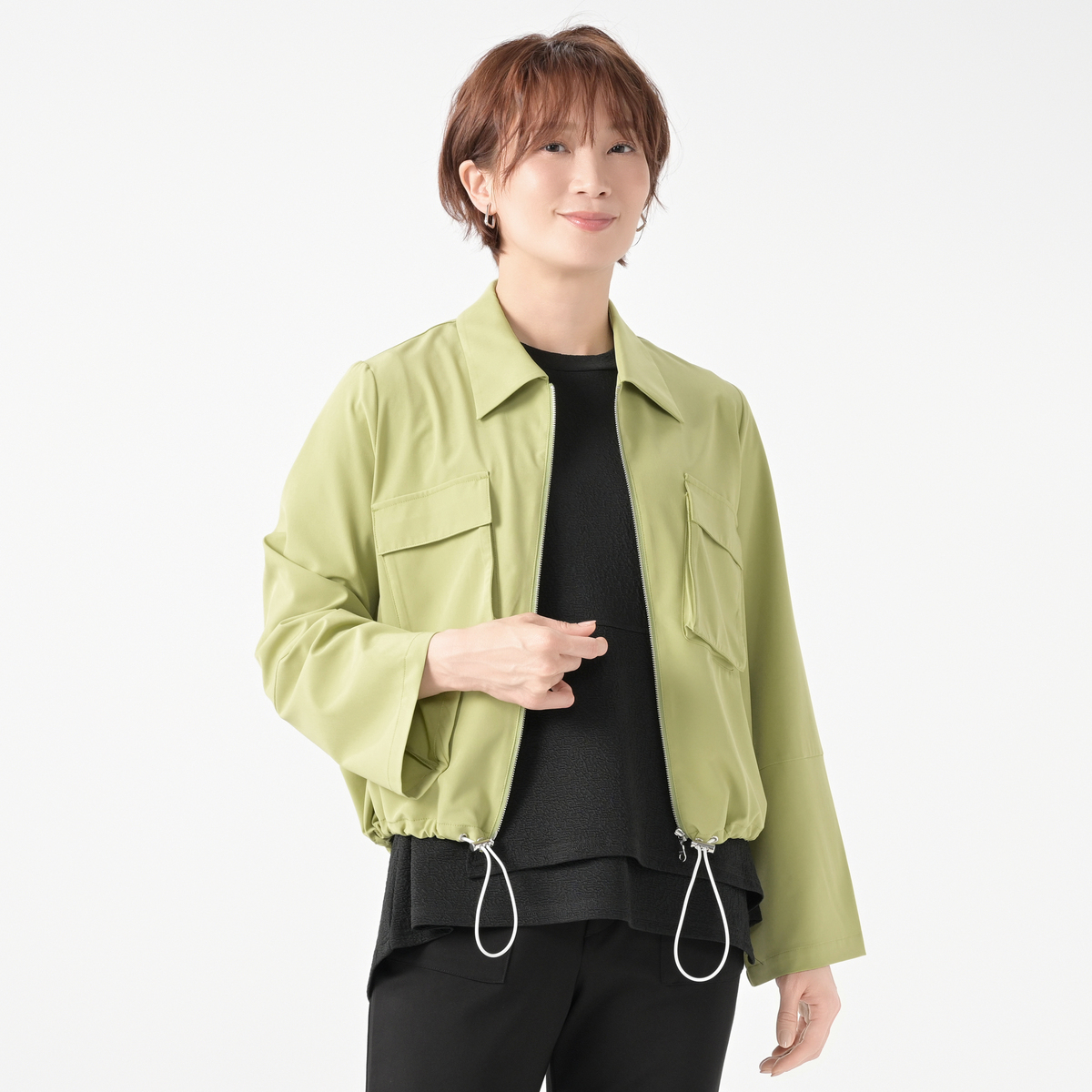 サッと羽織るだけでトレンド感のあるコーデが完成。ショートブルゾン風ジャケットです