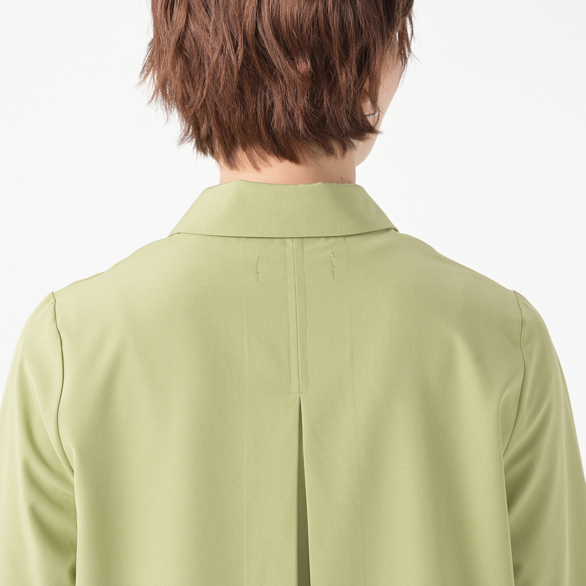 [商品寸法(ヌード寸法)cm] サイズ バスト 着丈 肩幅 袖丈 S:100(73〜81) 52.5 37 56 M:105(79〜87) 54 38 56 L:111(85〜93) 55.5 39 56 LL:117(91〜99) 57 40 56 3L:123(97〜105) 58.5 41 56 [素材] ポリエステル90% ポリウレタン10% [お手入れ] 洗濯機洗い可 [注意事項] ※商品寸法の誤差は多少発生します。ご了承下さい ※洗濯後は重ね置きしないで下さい ※洗濯後はすぐに脱水し、形を整えて干して下さい。長時間、水につけたままにしないで下さい ※素材の特性上、着用や洗濯・クリーニング時の摩擦により毛羽立ち、毛玉が発生します。その際はお早めに毛玉取り器等で手入れをして下さい ※直射日光や蛍光灯の影響で変色することがありますのでご了承下さい ※濃色製品は着用中の摩擦により色移りすることがあります。また、雨や汗等で濡れた状態で着用すると色移りすることがあります。その際はお早めに洗濯をして下さい ※洗濯やクリーニングにより徐々に色あせします。また、色落ちすることがありますので、他の物と分けて洗って下さい ※洗濯の際は裏返しにし、洗濯ネットを使用して下さい ※付属部分にアイロンを当てないで下さい 【中国製】