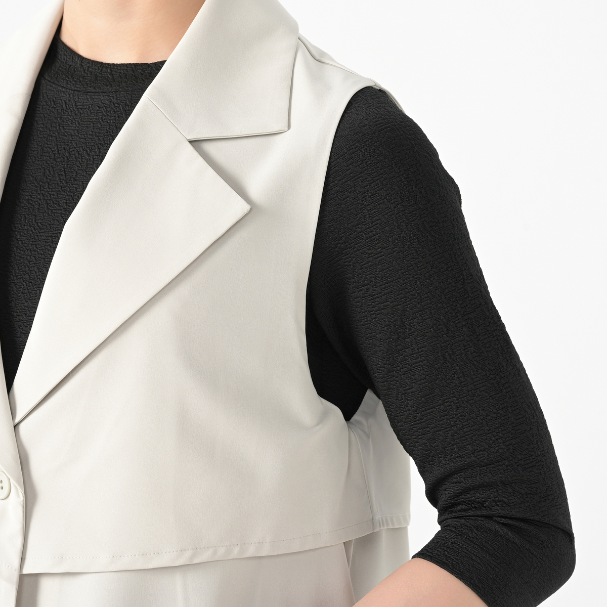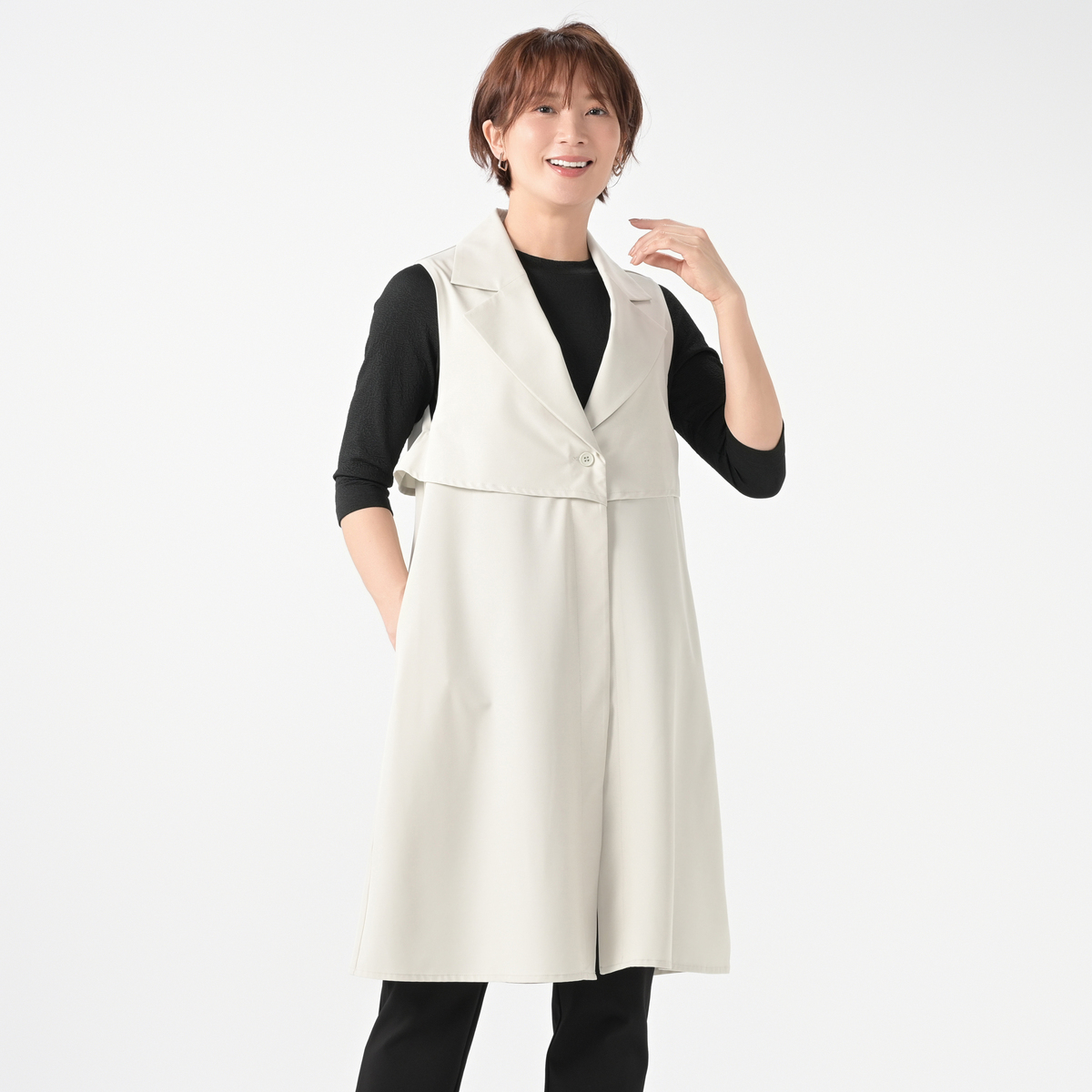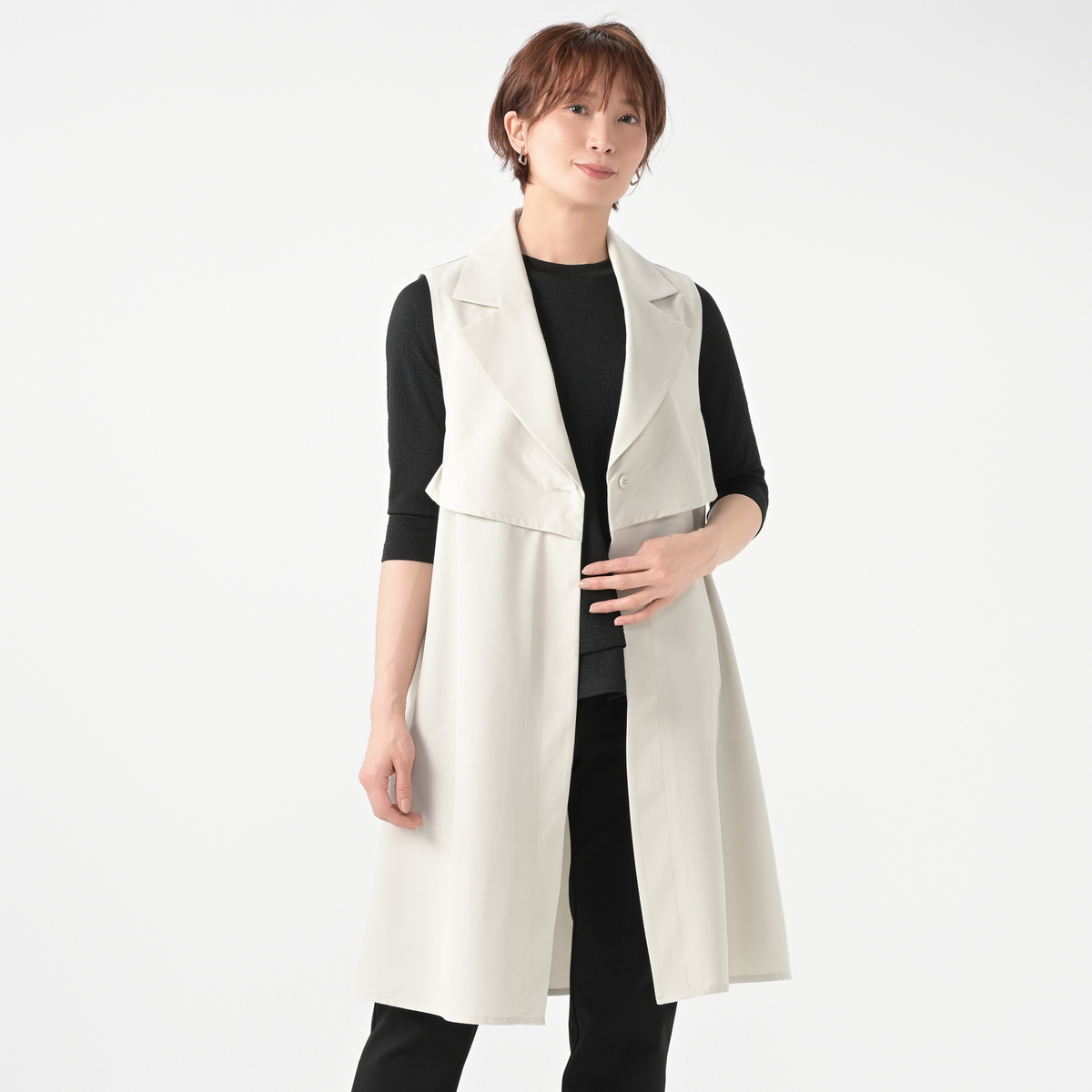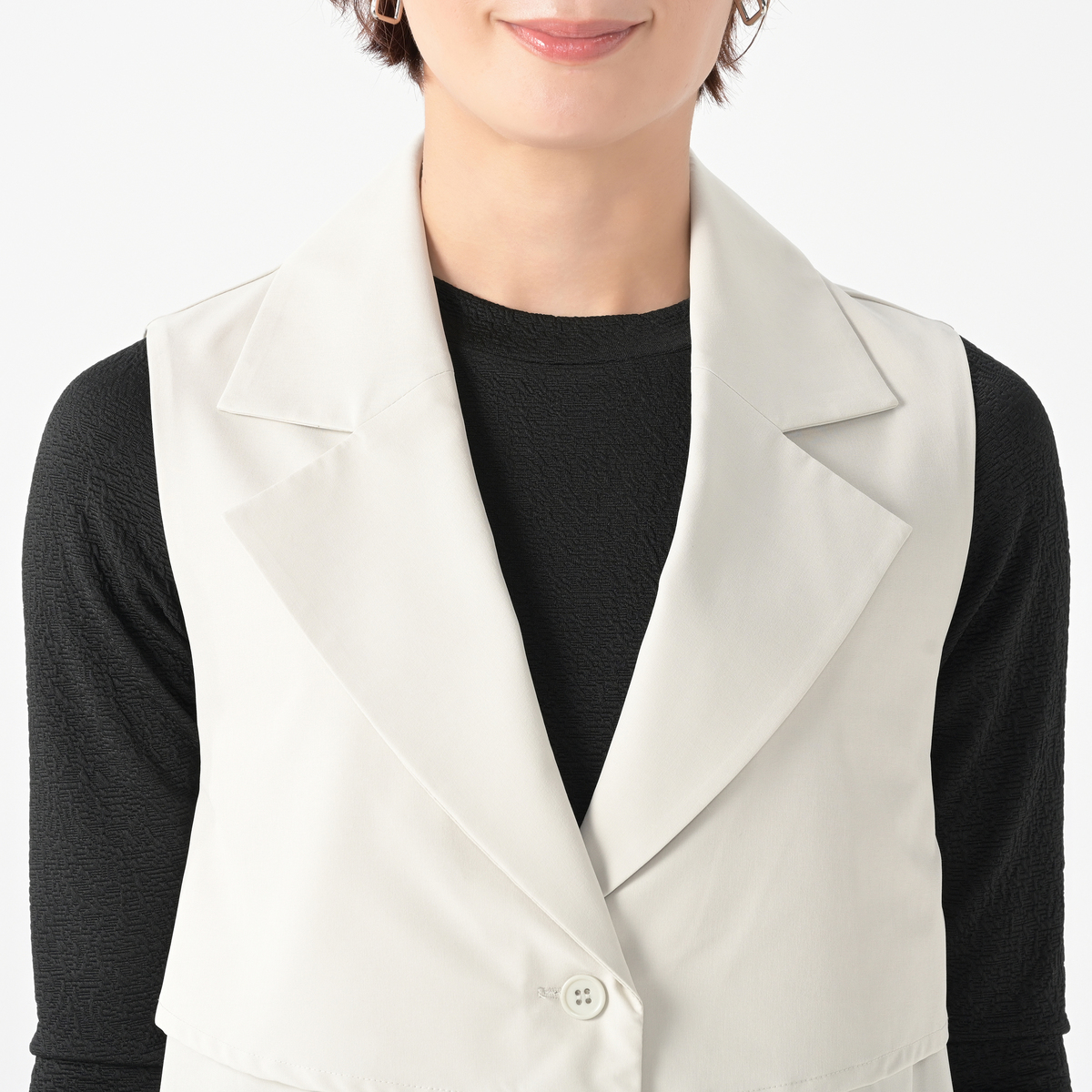 放送を観ていて素敵なジレだと思い、day to dayの洋服は初めて購入いたしました。襟があって着用するだけで様になる素敵なデザインだと思います。 ただ届いた時にシワがあり、生地感が思っていたものと違いました。軽くて良いのですが、お値段の割に生地が安っぽく感じます。 返品を迷いましたが、デザインは気に入りましたので着用しようかと思います。