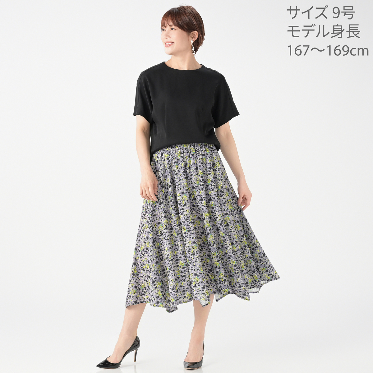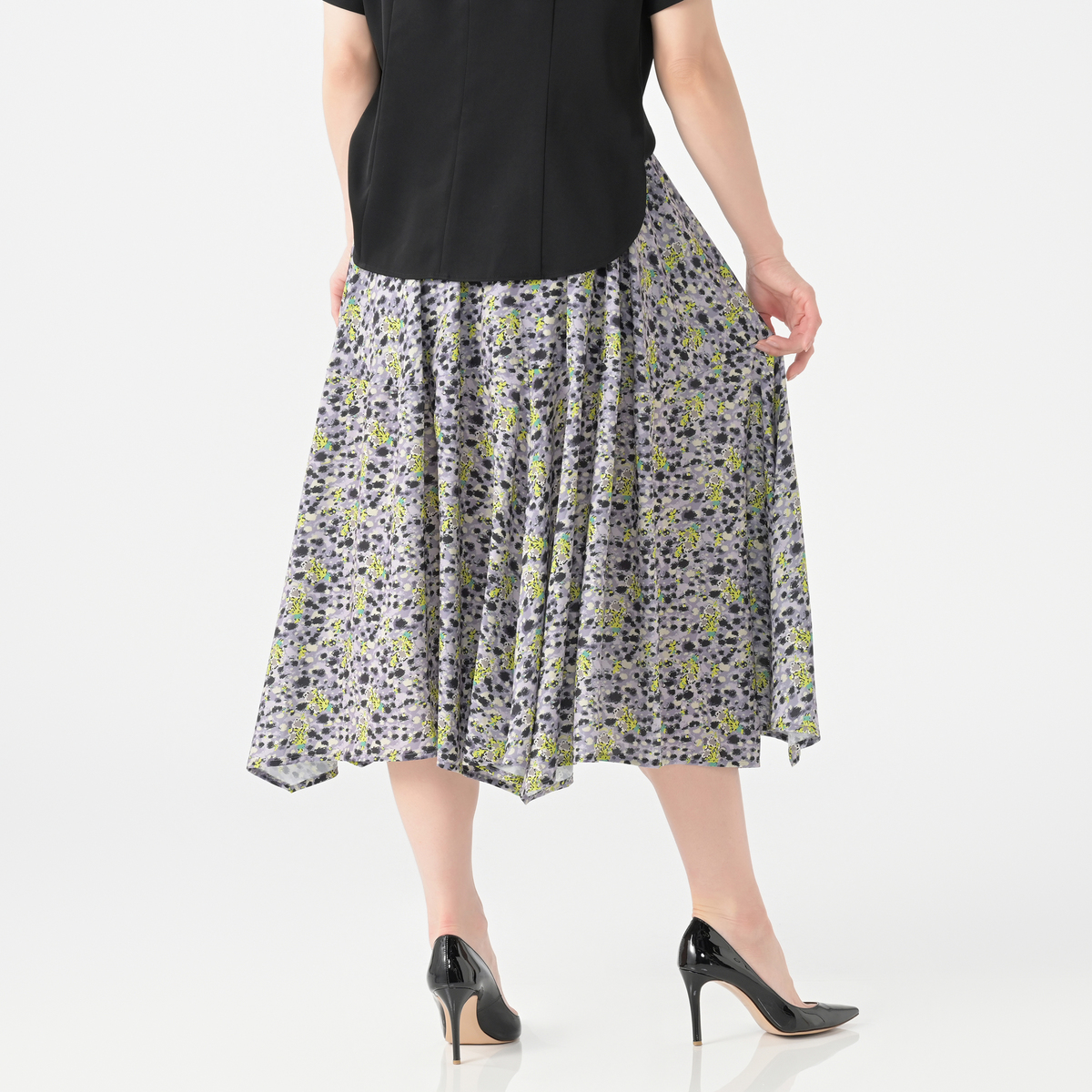 No. 740260 calma レオパードフラワープリント フレアスカート