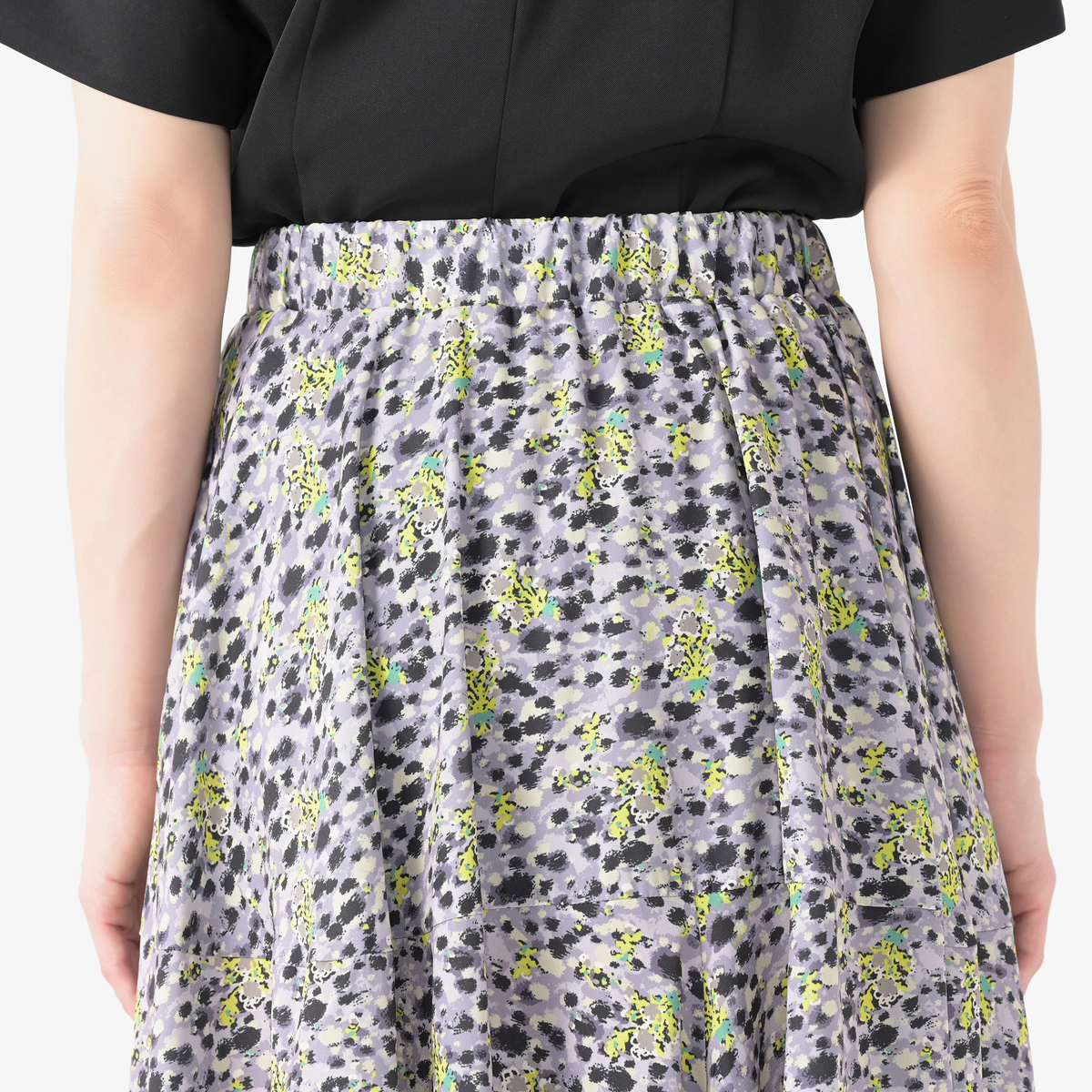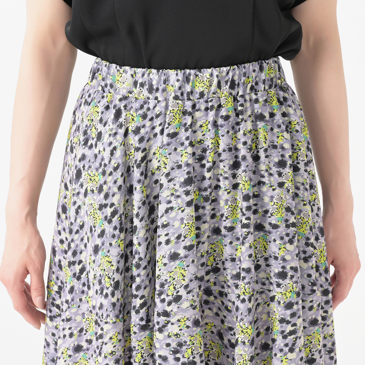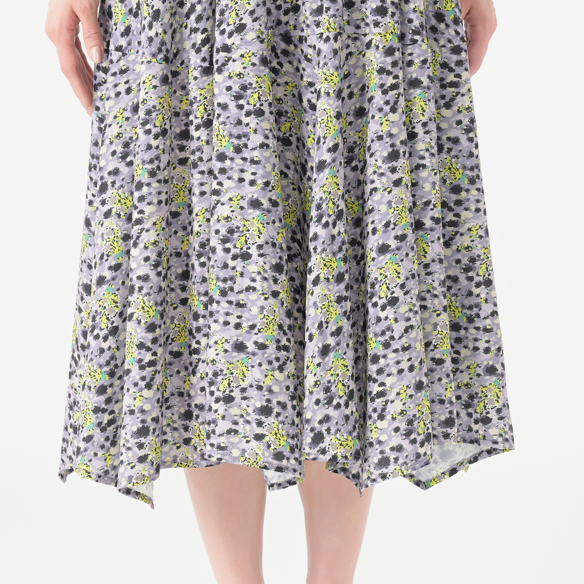デザイナーが描いたオリジナル柄が広がるフレアスカート。柔らかな風合いをキープするインクジェットでプリントしました。細番手の糸で緻密に織られた布帛の平織り生地で、シーズン問わず着まわせる柔らかな肌触りと軽やかな素材です。タフタの裏地が付いています