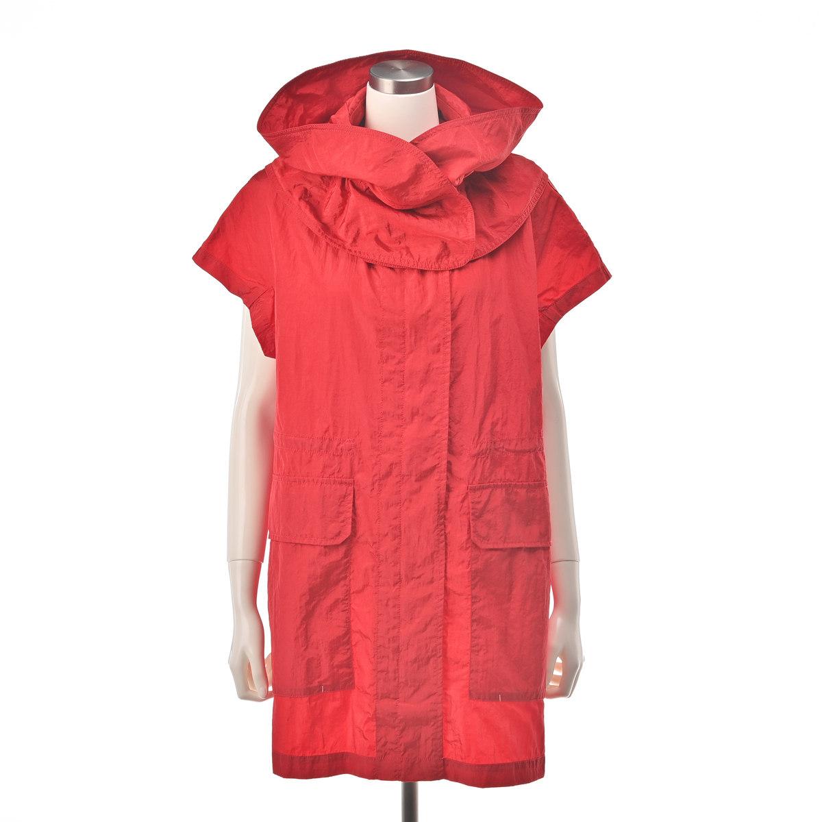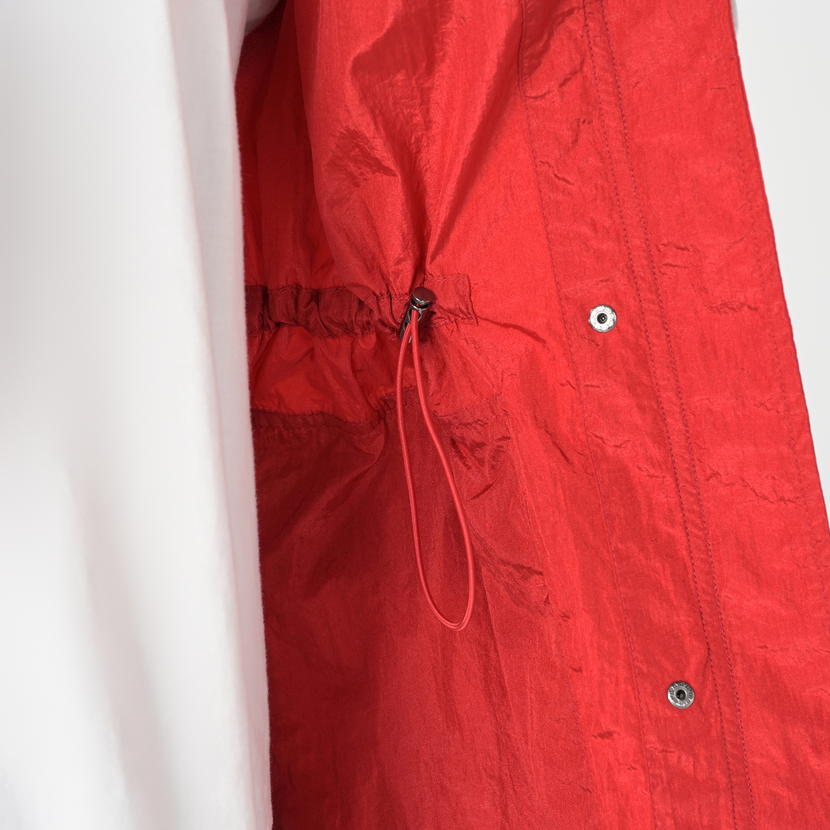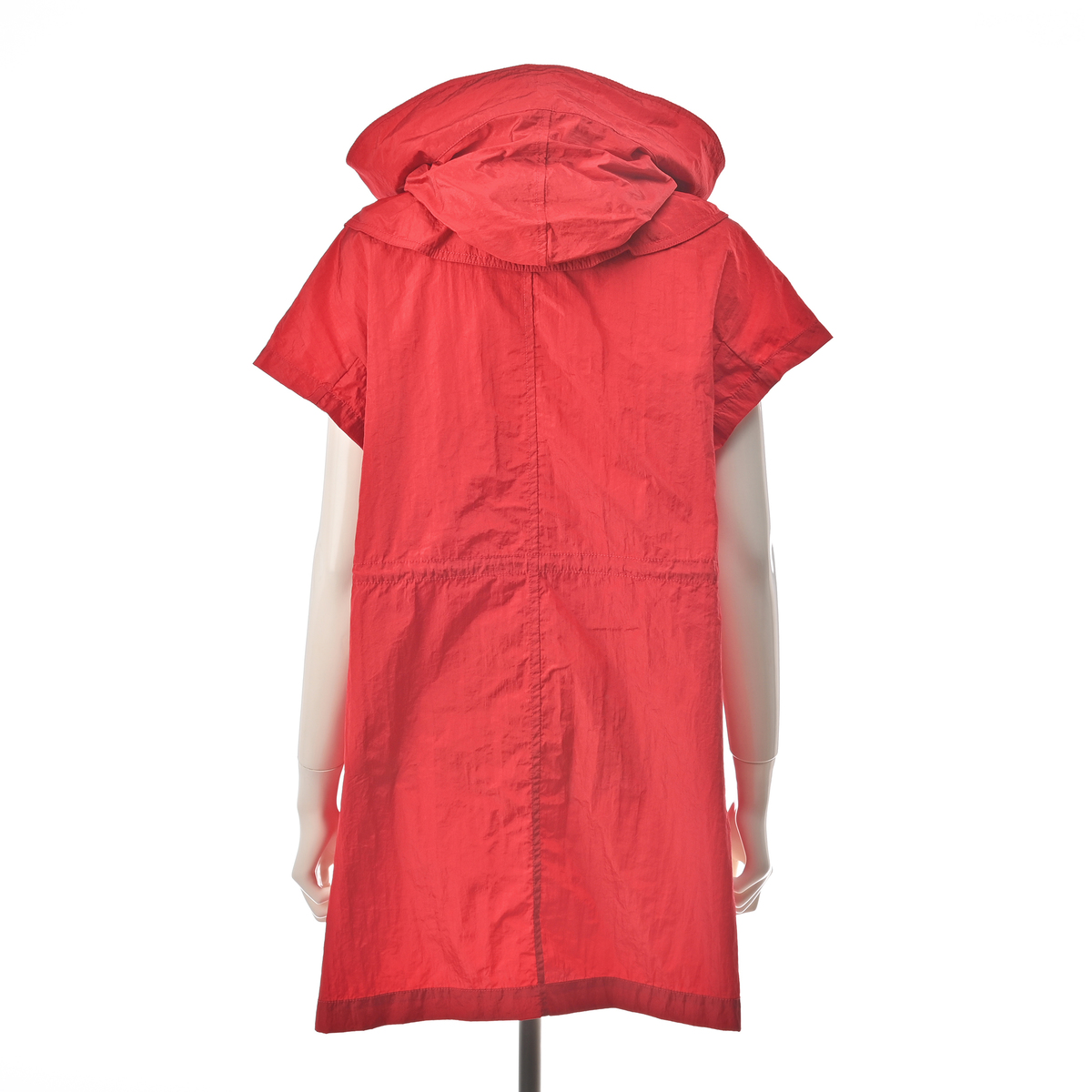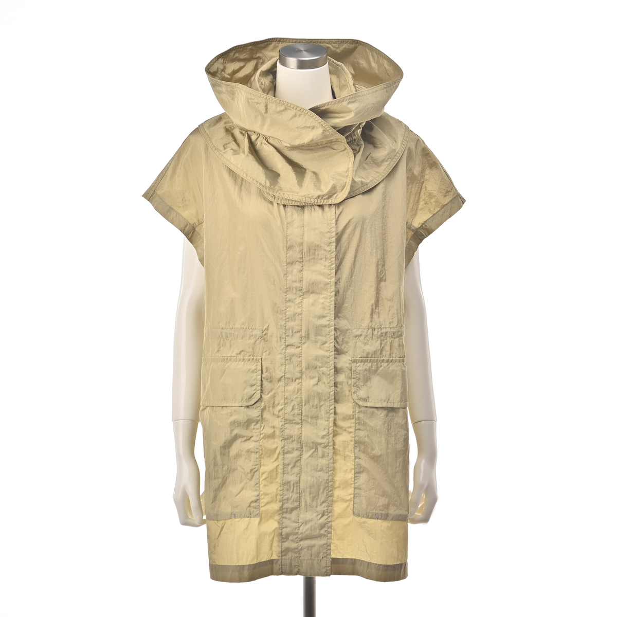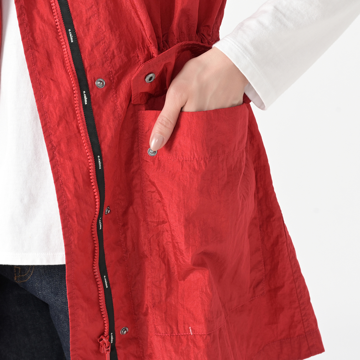 軽い着心地でシワを気にせず着回せるワッシャー素材を使用。ミドル丈のAラインシルエットで、コーディネートしやすいジレです。首から程よく離れたスタンドカラーが首のほっそり見せ効果とフードの綺麗な立ち上がりを演出。モッズコートのフードをイメージしながらも、大人に似合う上品さを目指した作りです