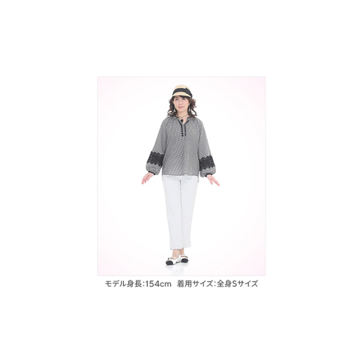 50代でもまだまだ可愛くいたいと思っています。少しぽっちゃりな私でもスタイルよくみえる美脚パンツです。暖かくなって来てお花見に行く服装にぴったりで気に入ってます。