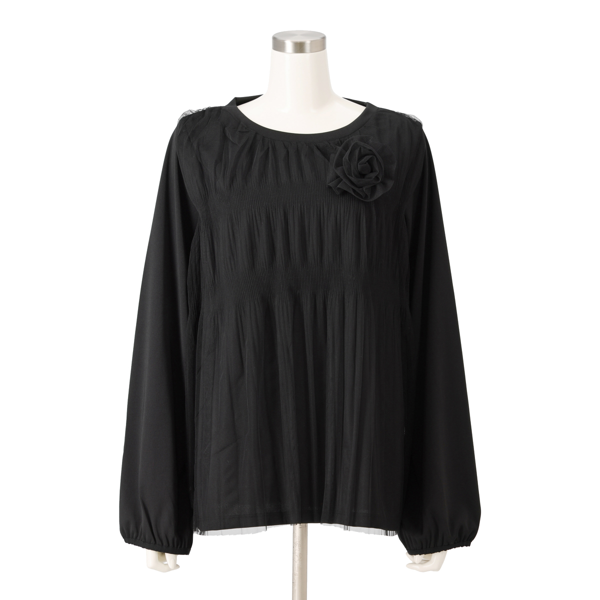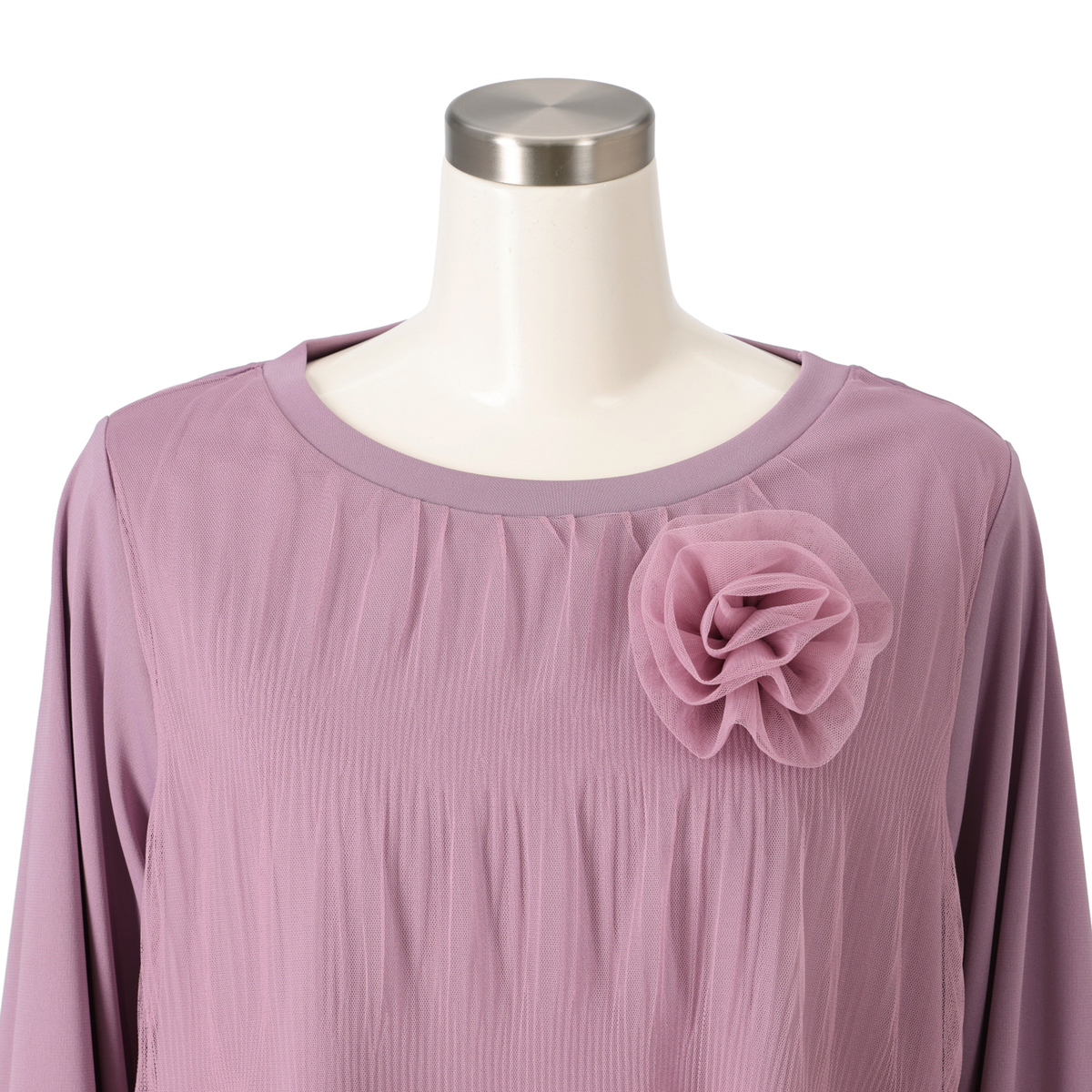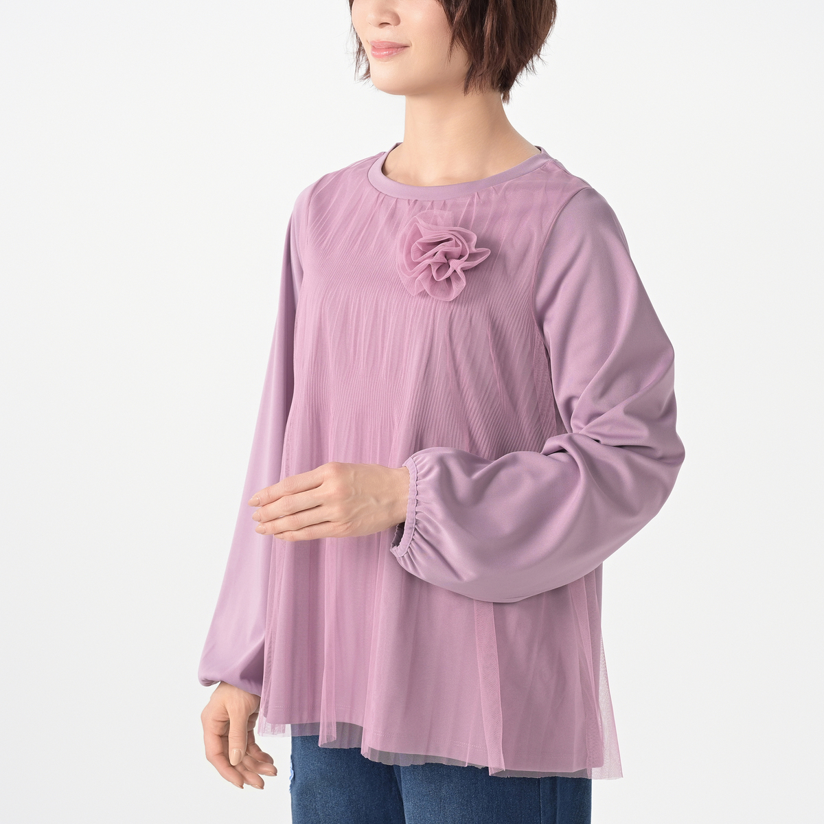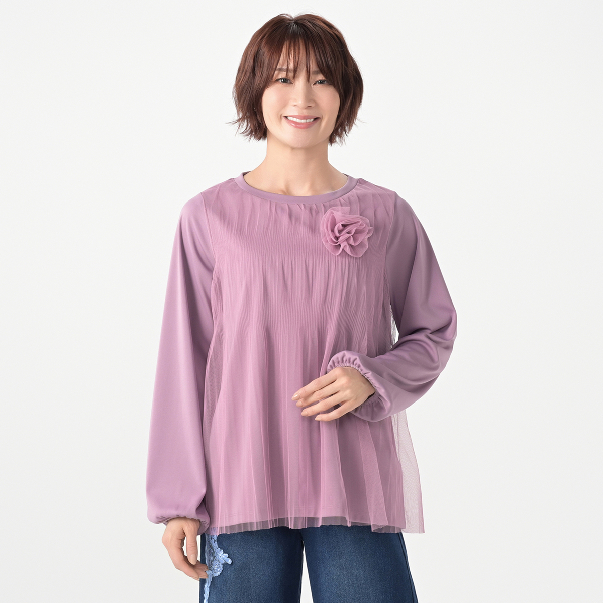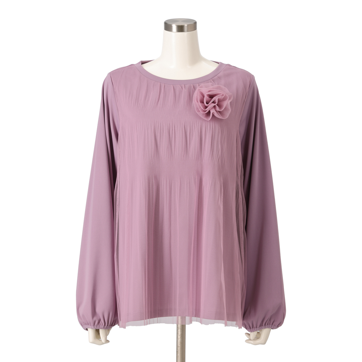 No. 740361 &LOVE フラワーコサージュ付きエレガントプリーツプルオーバー