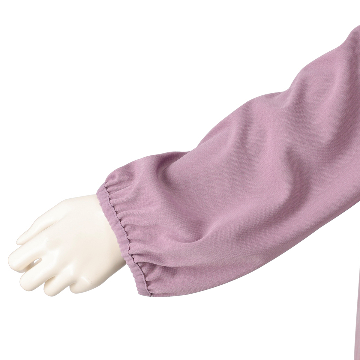 胸から腰にかけて末広がりのAラインで、袖は袖口を絞ったふんわりシルエットに。前身のチュールと同素材で取りはずしできるコサージュ付きで、お好みで有り無しも楽しめます