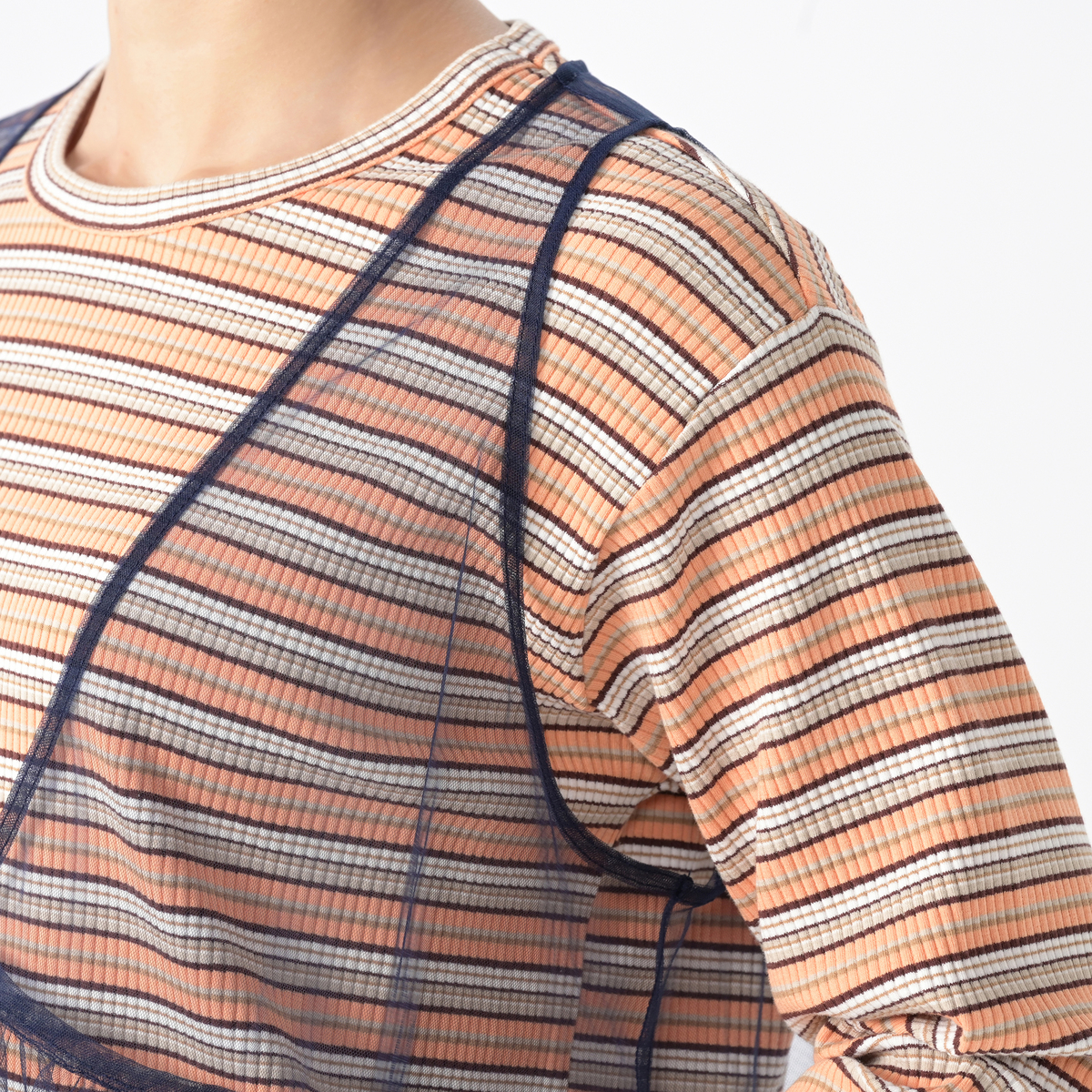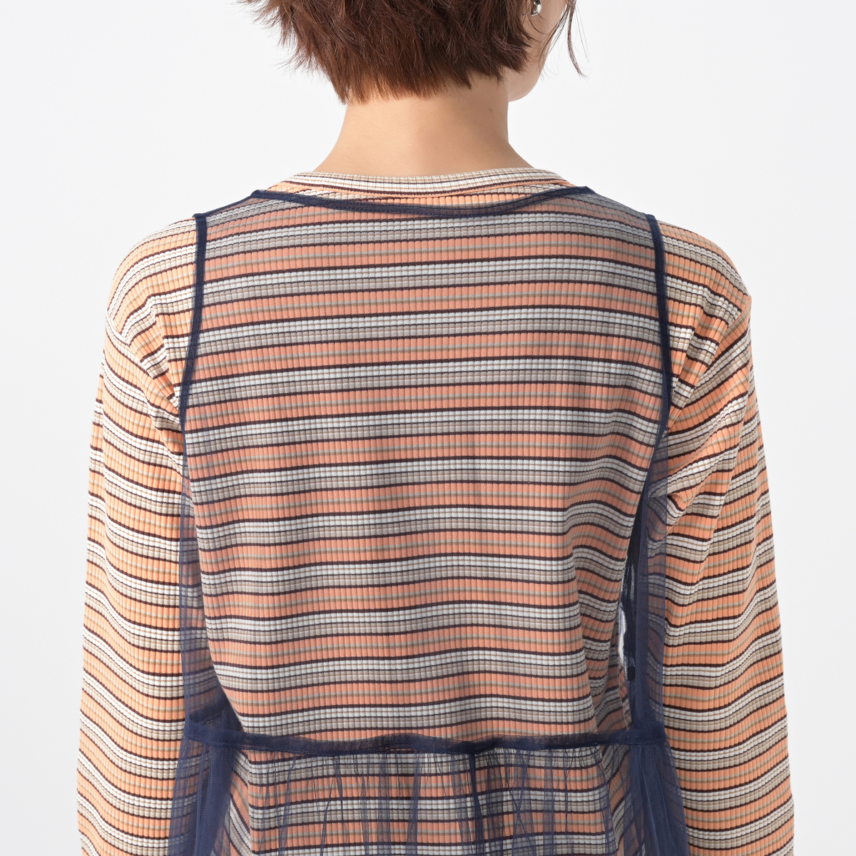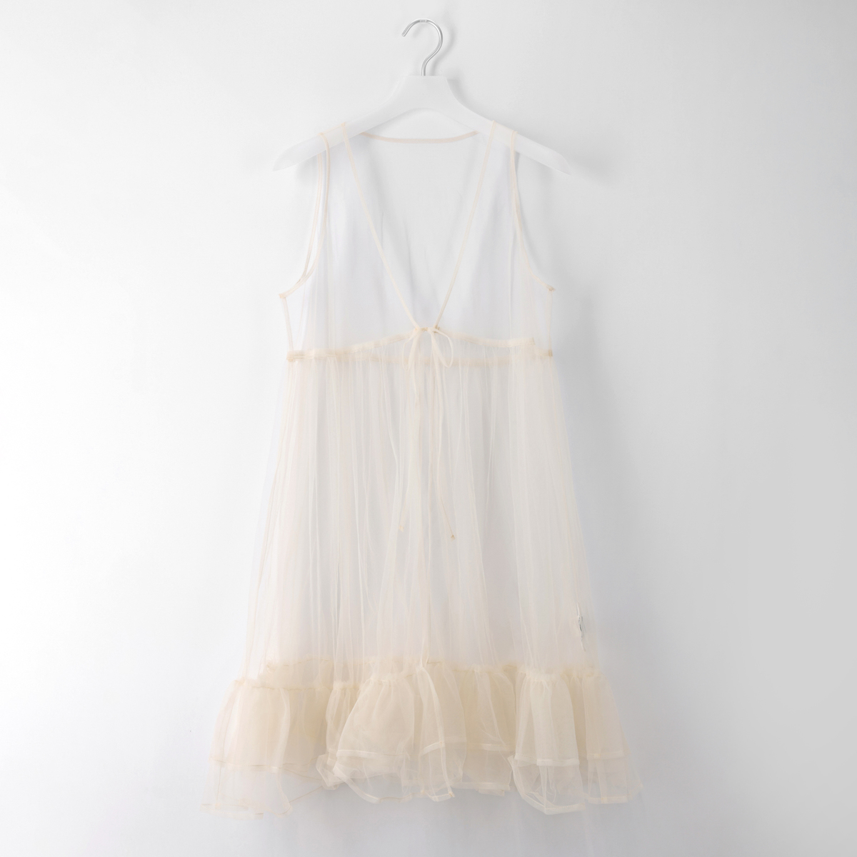 上品な透け感が、ふんわりと柔らかな雰囲気を演出。様々なアイテムの上に重ねてコーディネートをお楽しみいただけます