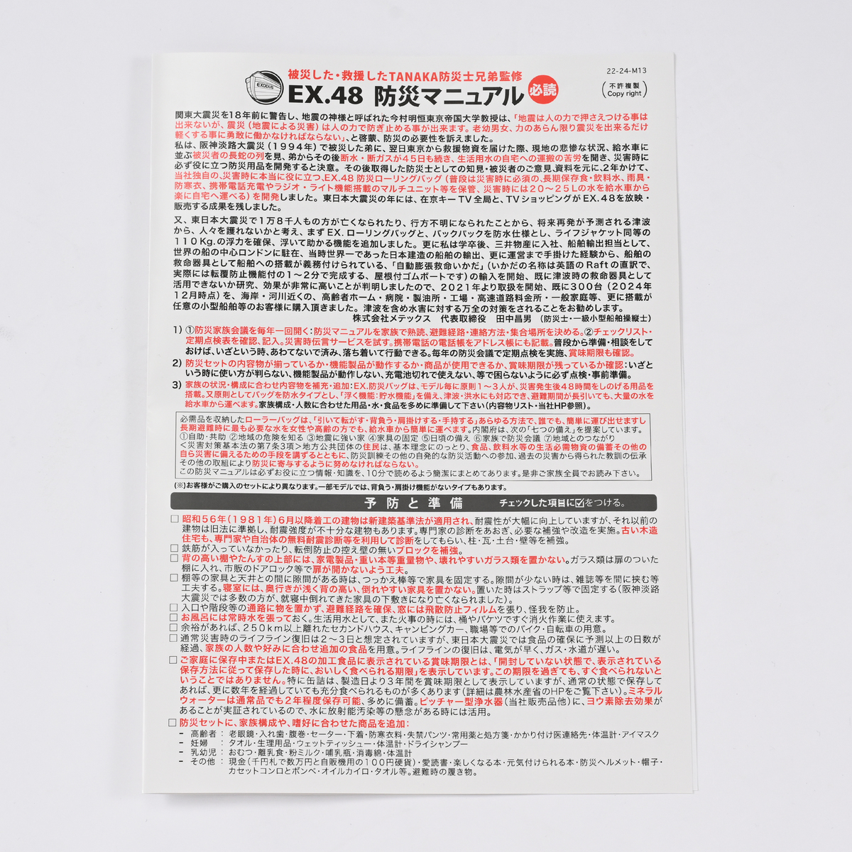 EX.48 兄弟防災士が厳選した2人用防災セット