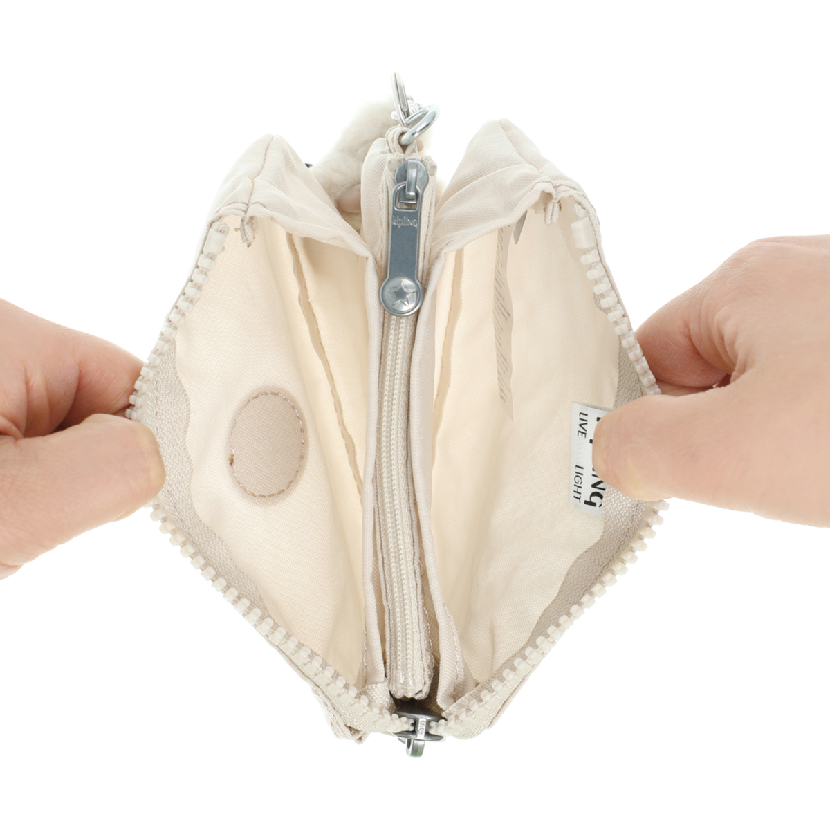 [サイズ(約)]縦10×横14.5×厚み4cm [重量]約50g(付属品含む) [素材] フラワーポルカ・グリーンリーブス・ブルーピンクパーム・ウェーブプリント:ポリエステル エンジョイローズ・ハイダウェイサンド:ナイロン ※裏地無 [仕様] 付属(取り外し可):チャーム×1 開閉:ファスナー式 [ポケット] 内側:仕切り兼用ファスナーポケット×1、オープンポケット×2 外側:無 [注意事項] ※直射日光や蛍光灯の影響で変色する場合がありますのでご了承ください 【インドネシア製】