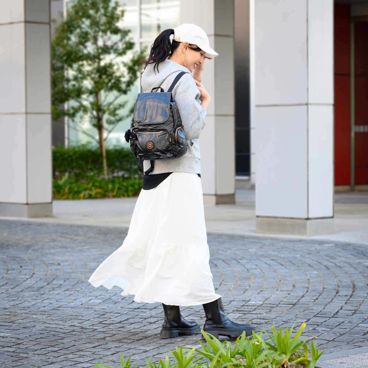 グロリアスゴールド、グロリアスシルバーの表地には56%のリサイクルナイロンを使用。全色の裏地には100%のリサイクルポリエステルを使用。商品にはリサイクル素材を表す下げ札が付き、環境に配慮したブランドの姿勢を表現しています