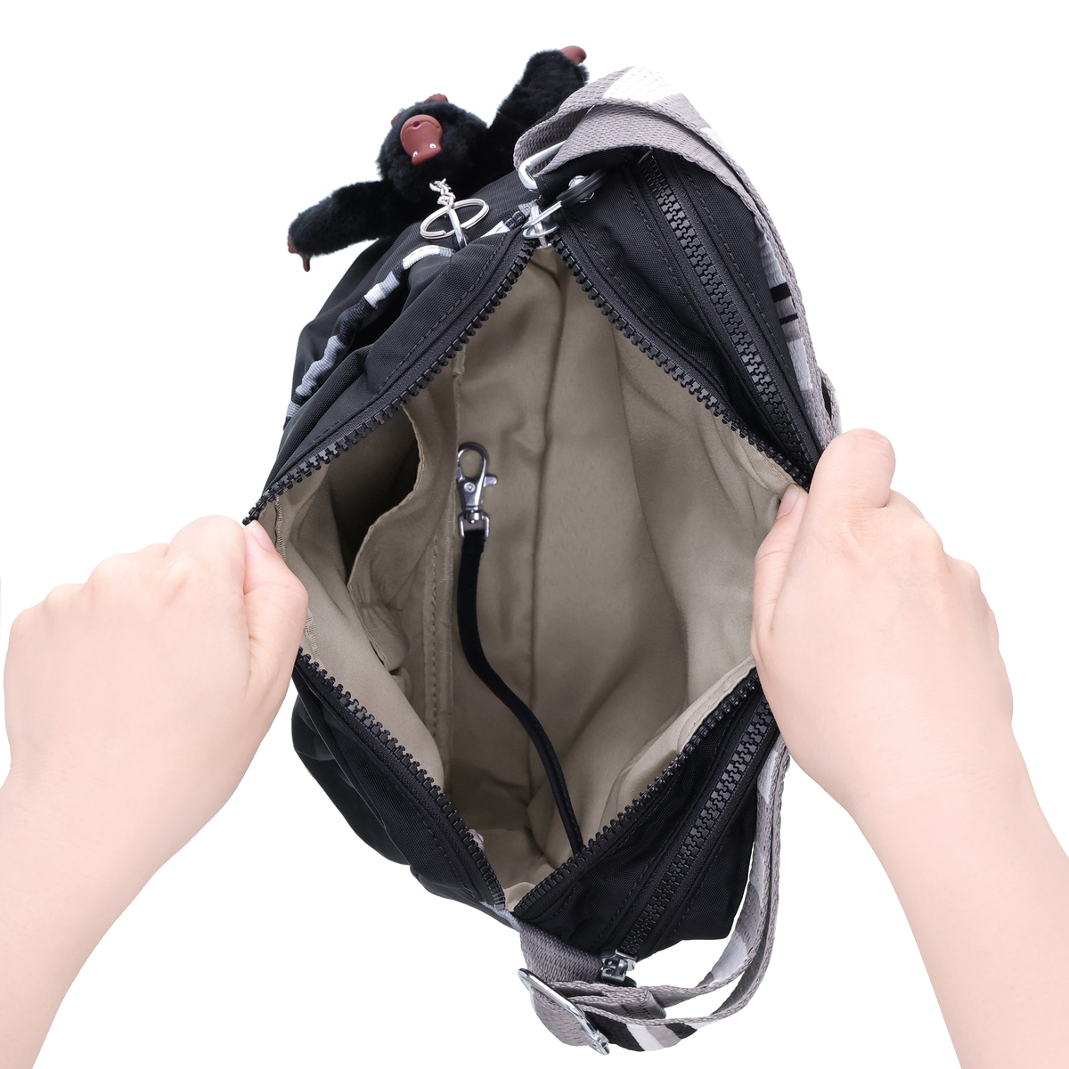 ギリギリまでグレーストライプと迷いましたが、16年使っていたキプリングの黒を処分したので、やっぱり黒にしました。よかったです。大きさもよかったです。ストライプがアクセントになって黒でもスッキリ見えます。