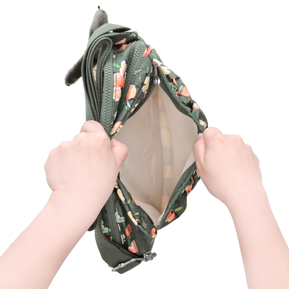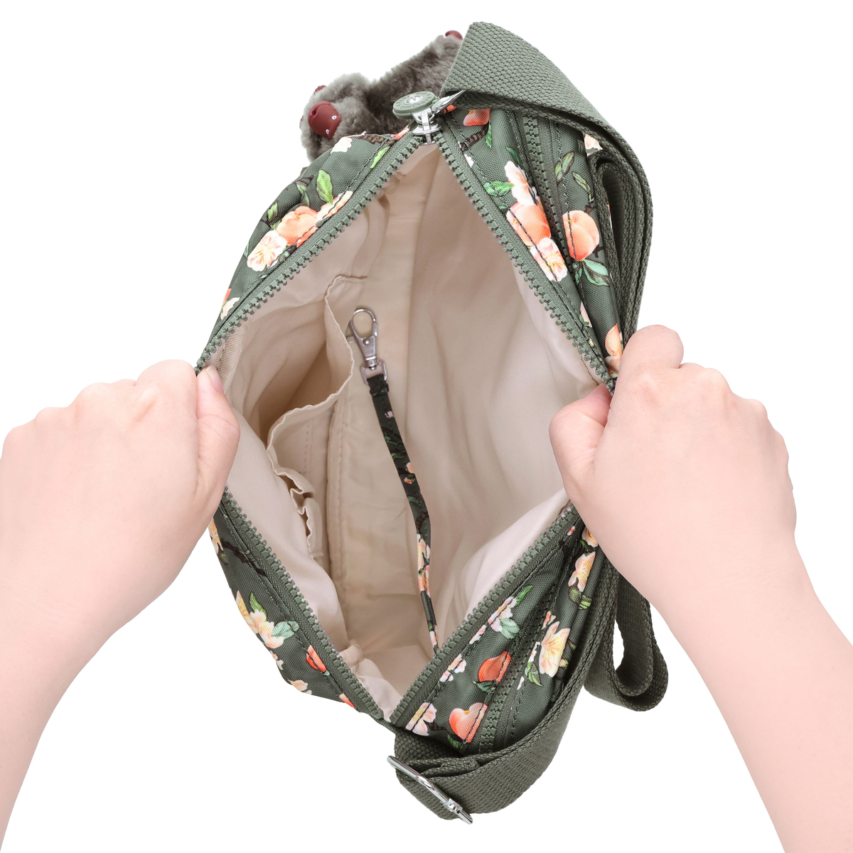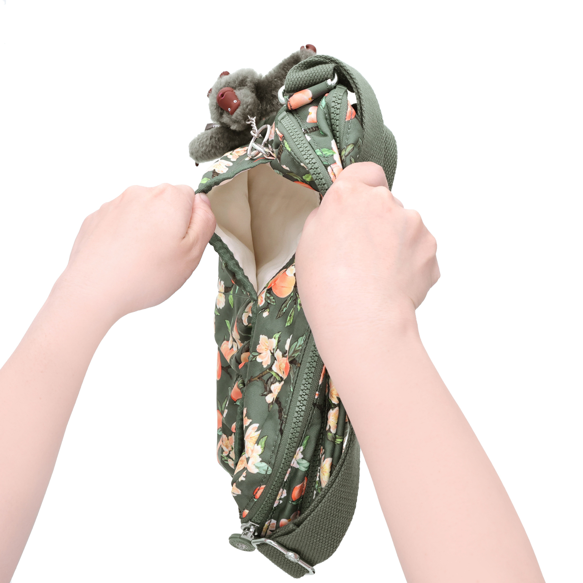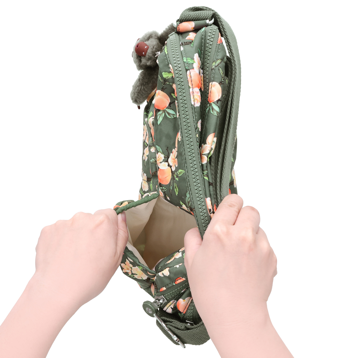 アバヌ持っていて少し小さいと思っていましたがこちらはアバヌより一回り大きいので、使い勝手がいいです ファスナーで収納が分かれているのが便利 ピーチブロッサムはキプリングでは珍しい?柄物 これからコートの季節にポイントになるかもです