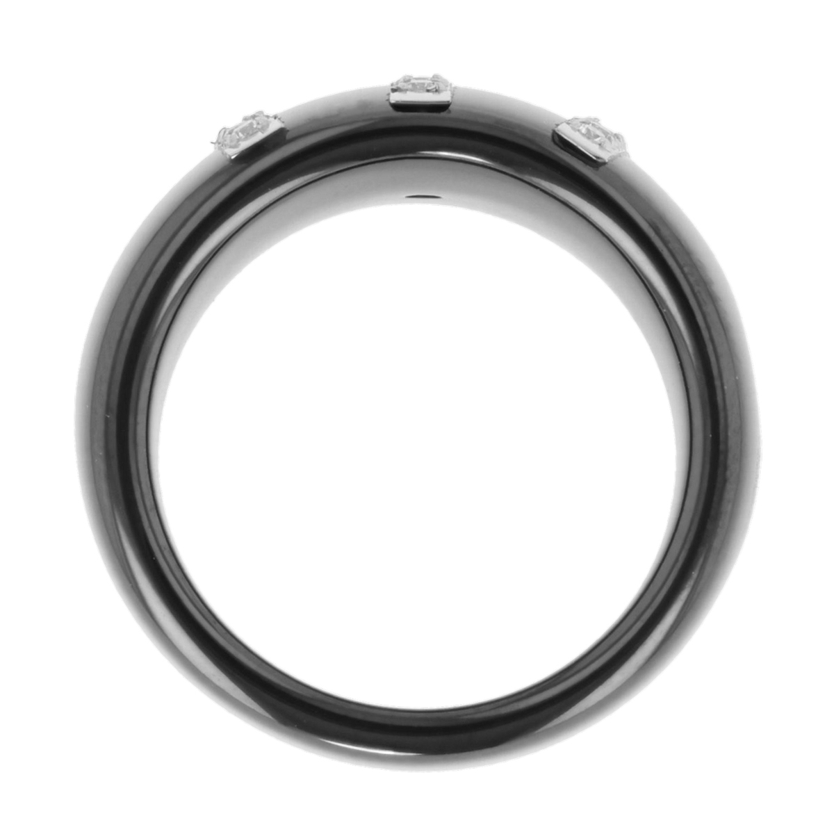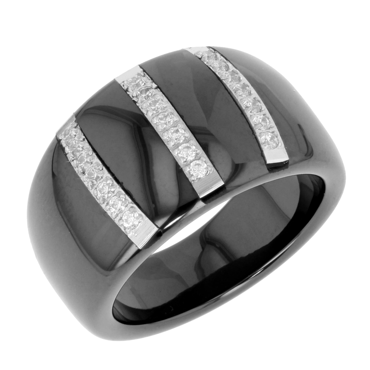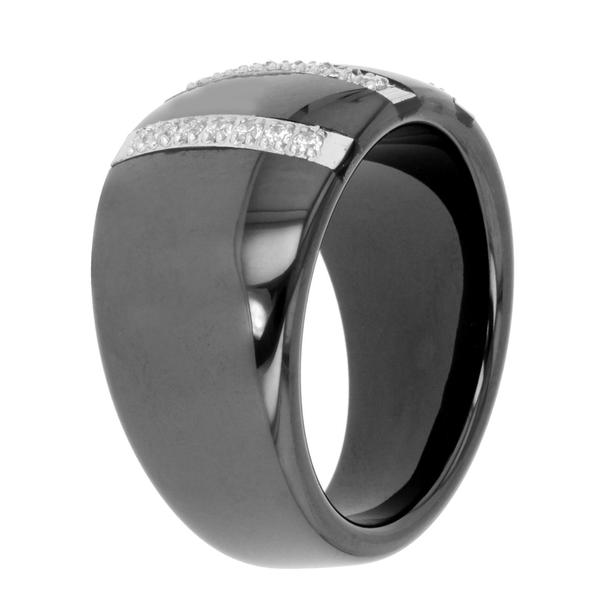 ブラックセラミックに浮かぶキュービックジルコニアのラインが、指元にモダンな美しさを添えてくれます