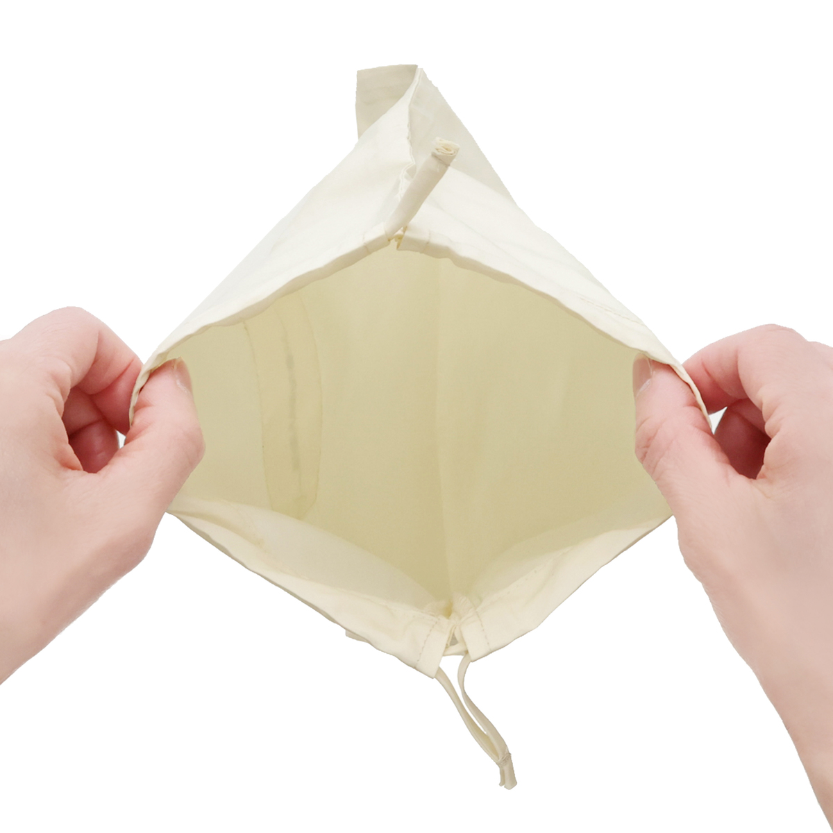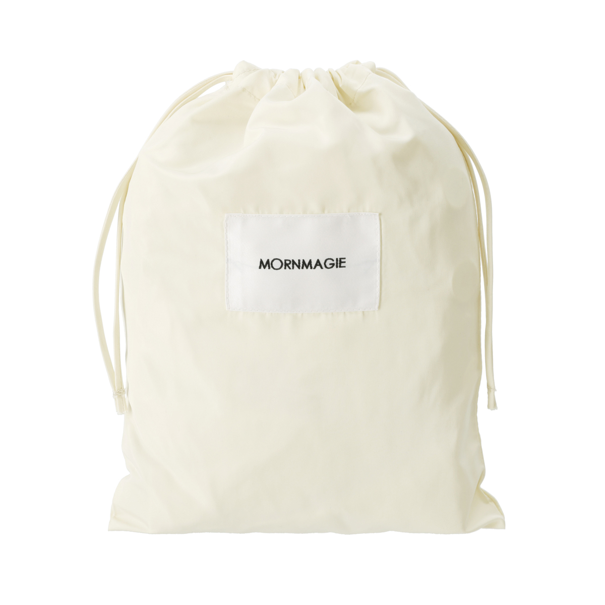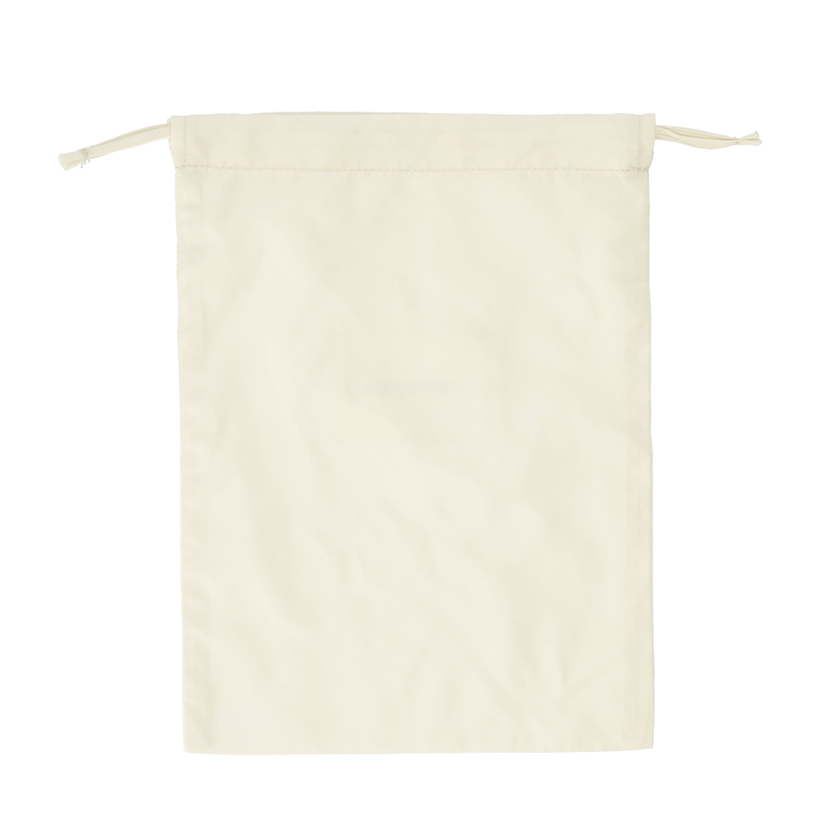 たたんで持ち運べるようにジレと同じ生地で作った袋付き。ポリエステルタフタ生地なので軽くて柔らかく、シワになりにくいイージーケアな素材です