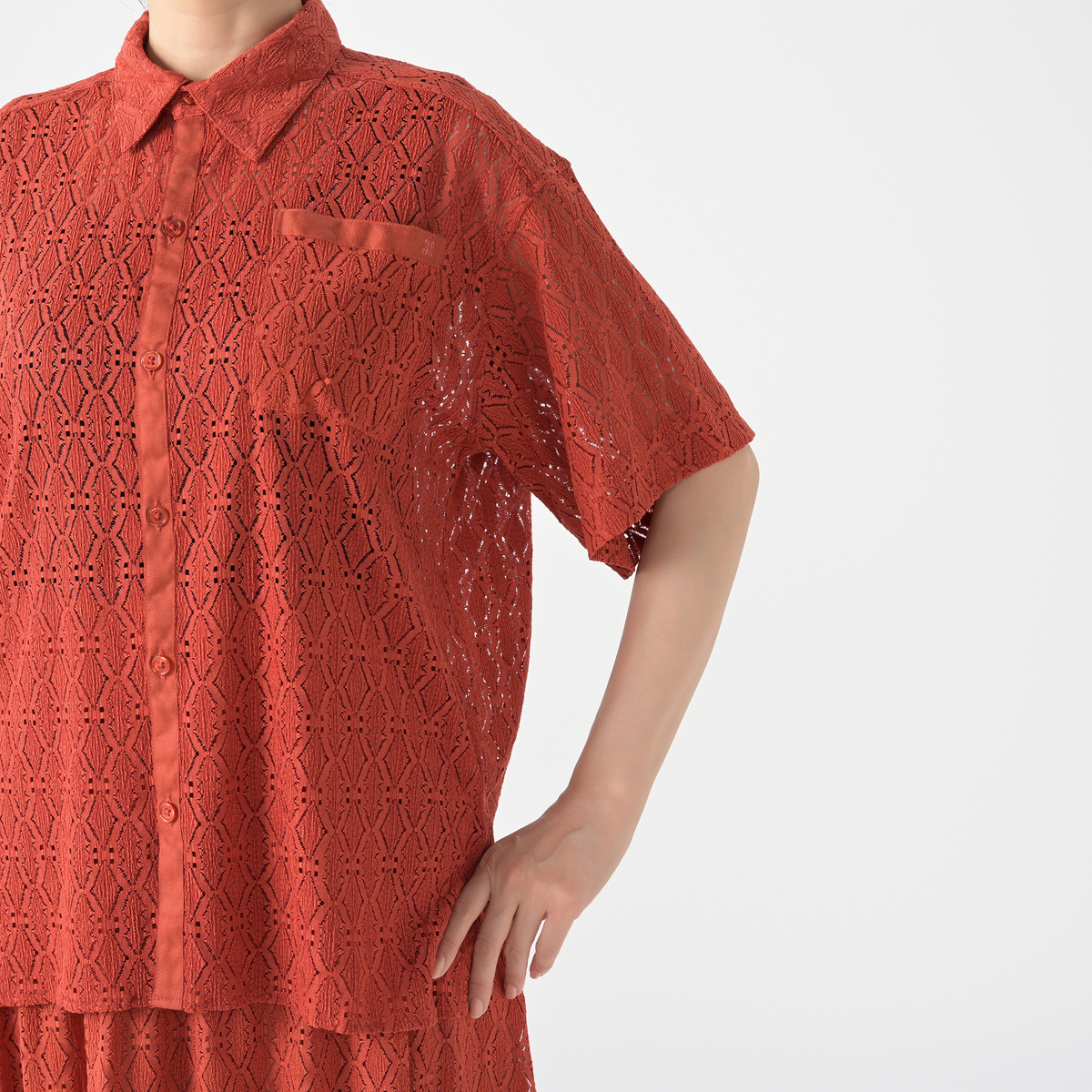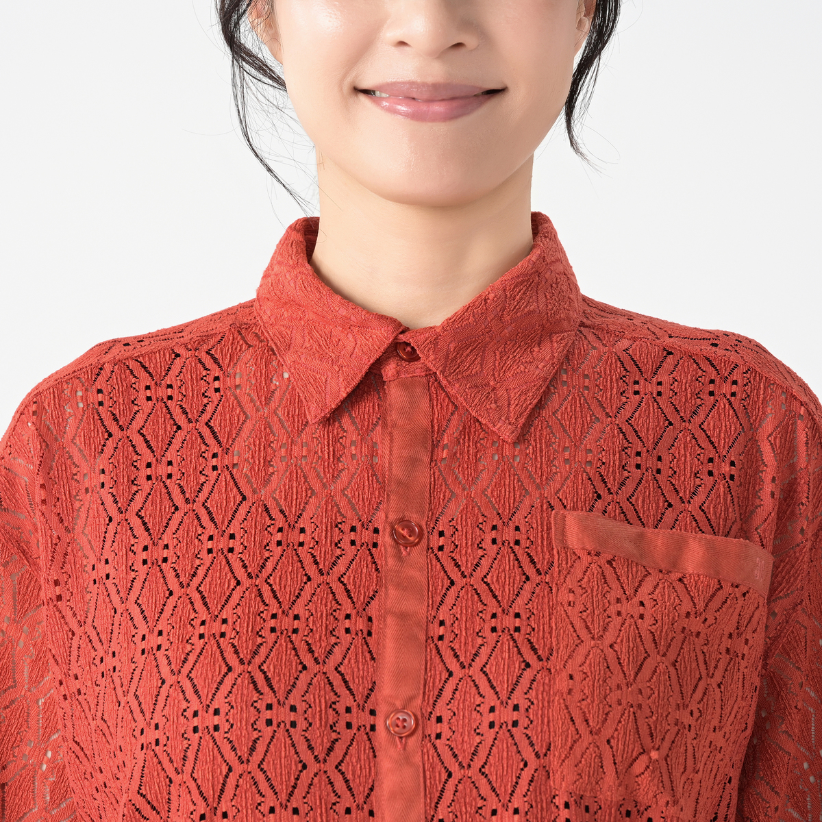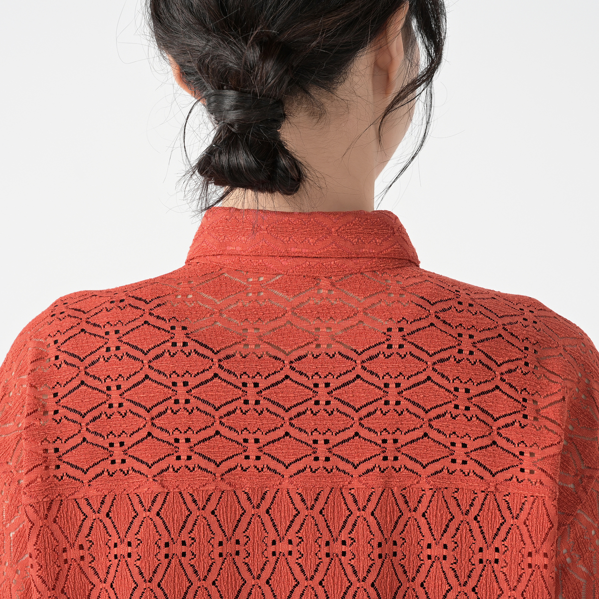 程よいシアー感が今どきな、レース素材で仕立てたオーバーシャツです。ゆったりとしたドロップショルダーと軽やかなスリットデザインが、抜け感のある着こなしに。胸ポケットのさりげないロゴ刺繍やテープ使いが控えめなおしゃれを演出します