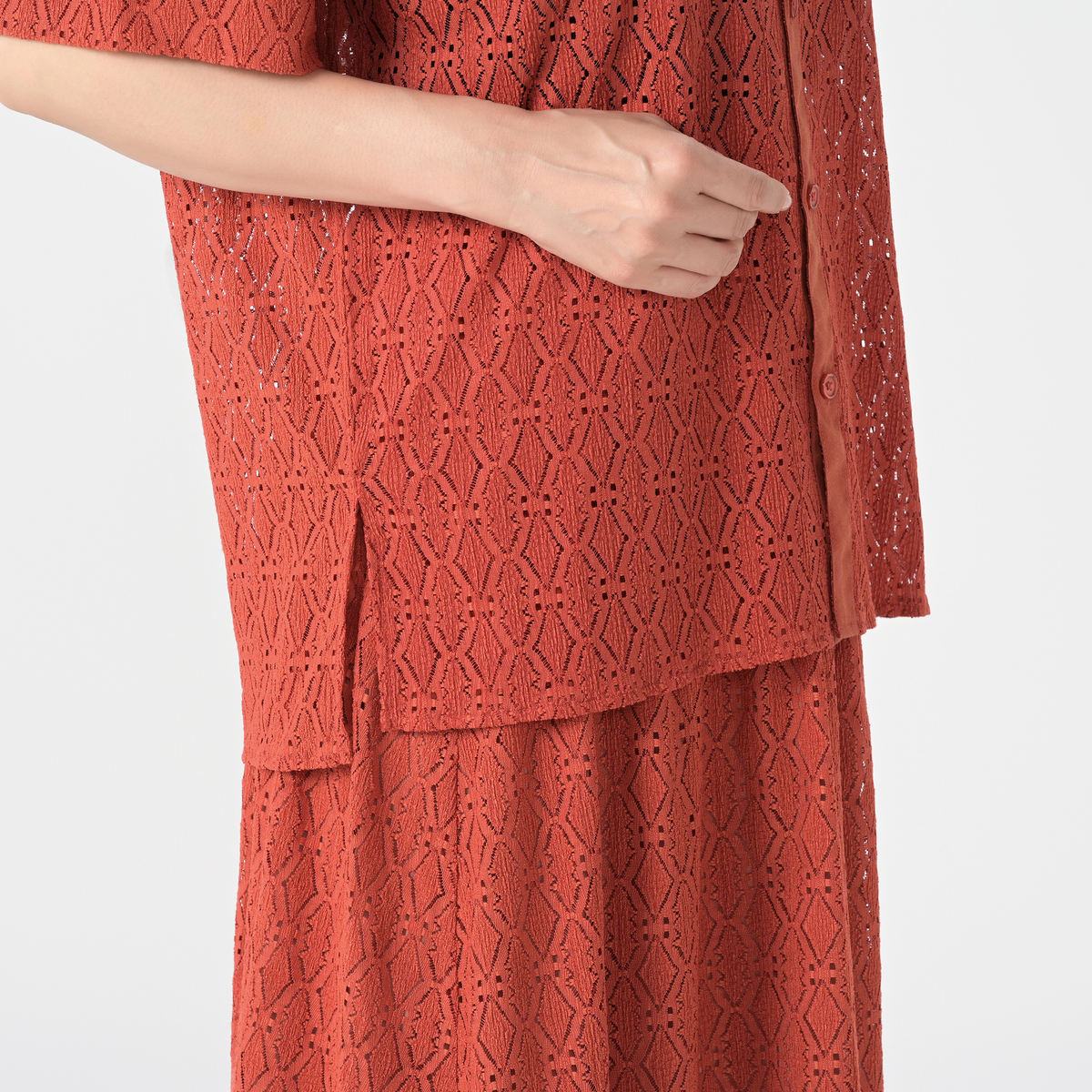 さらりとした肌触りのレース生地が心地よく、ダイヤ柄がメッシュジャガードのような柄デザインで、性別問わず着用可能。羽織りとしても使えるので、普段着からお出かけまで幅広いシーンで活躍します
