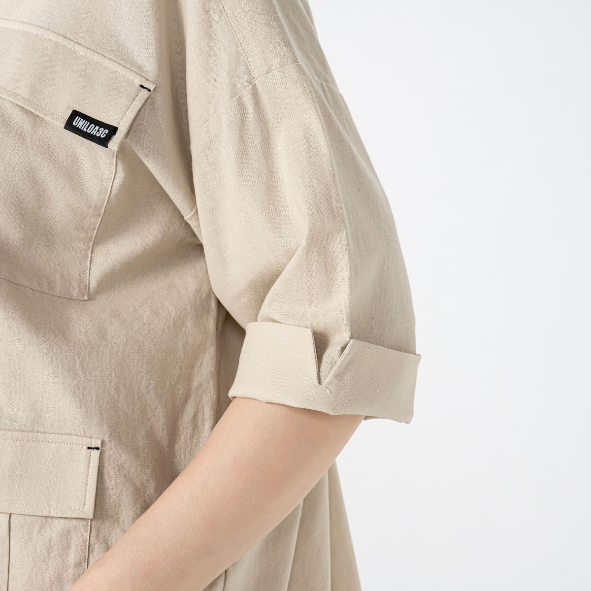 No. 740626 UNILOA3C 麻混サファリ風シャツ