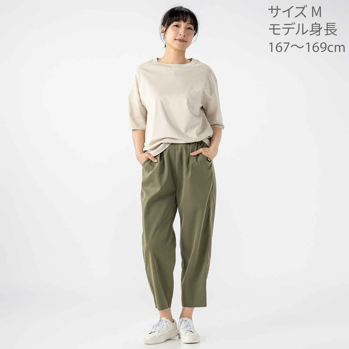 オーバーサイズで着たくて購入しました。生地が柔らかく落ち感が良いので広がらないし、肘が隠せるのも◎ 肌触りが良いので着疲れしないです。シンプルなところも好みです。Vネックもあったら…購入すると思います。