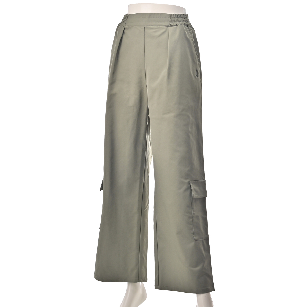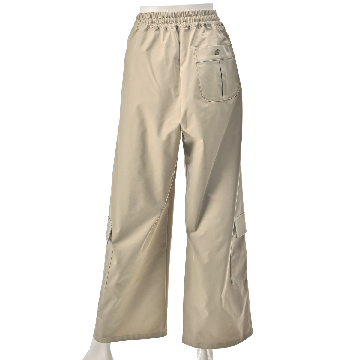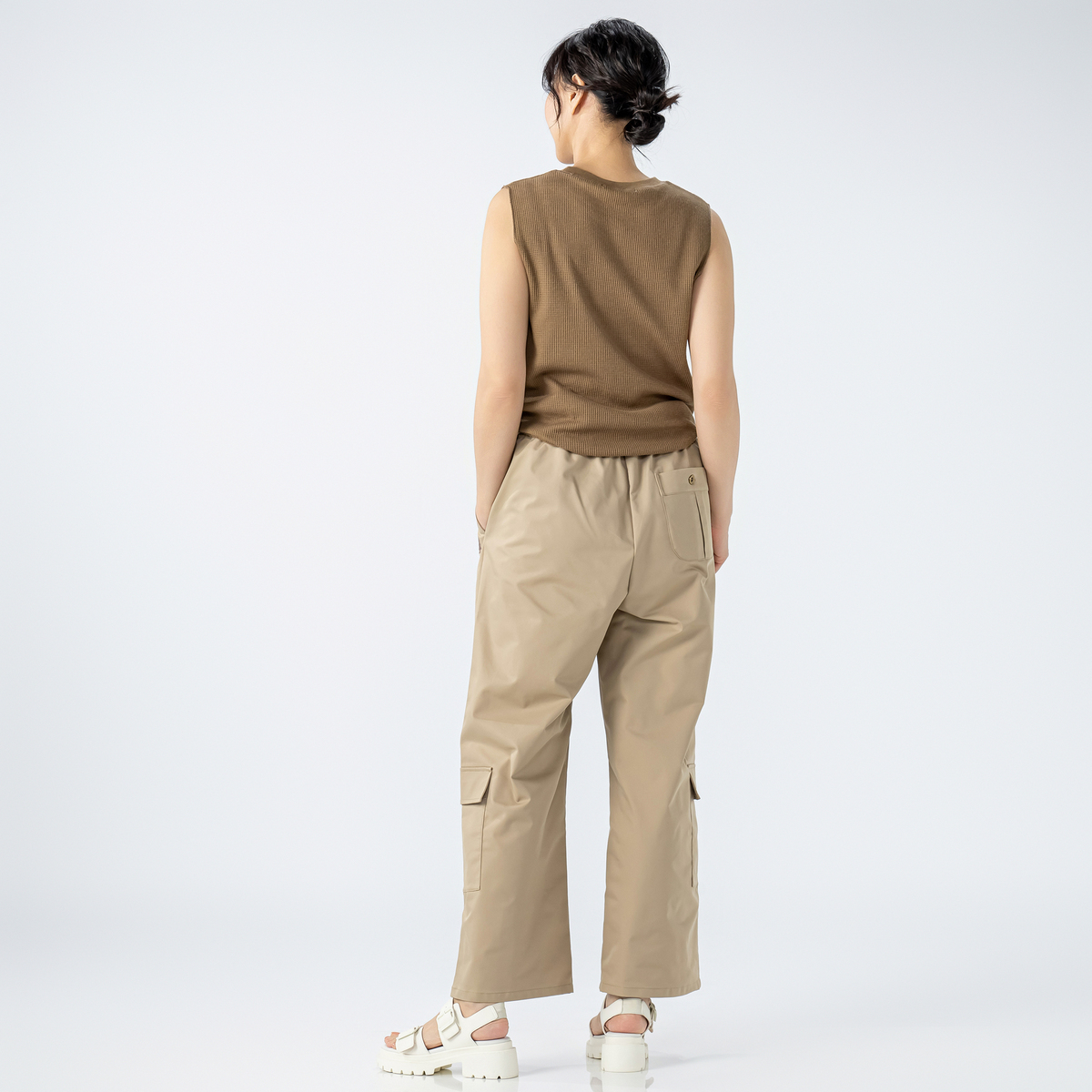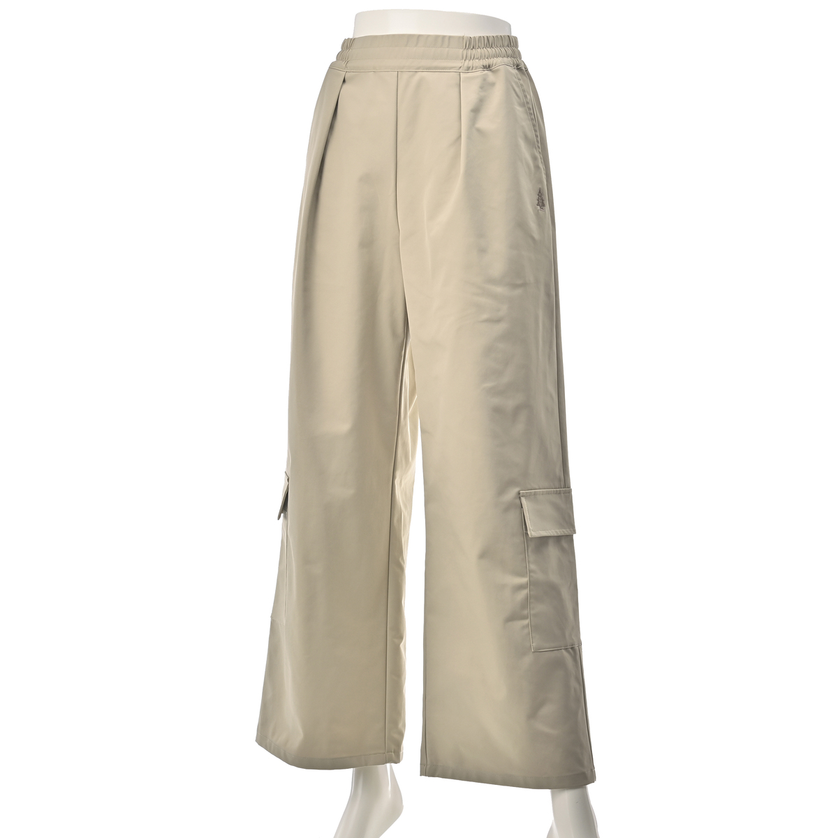 撥水性のある素材を使用したワイドパンツ。膝下には大きなポケット付きで、裾にはロールアップ機能があり、様々なシーンで活躍してくれそうです