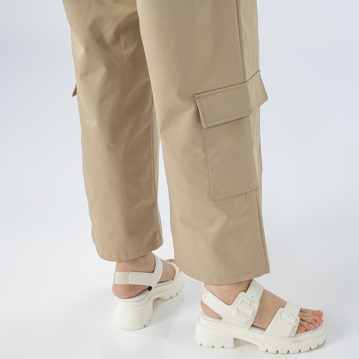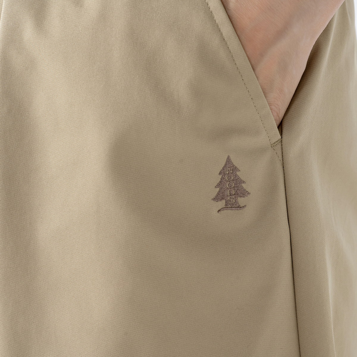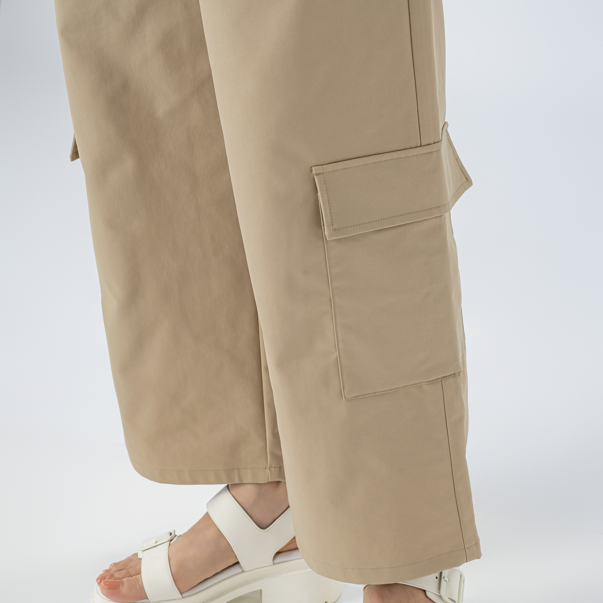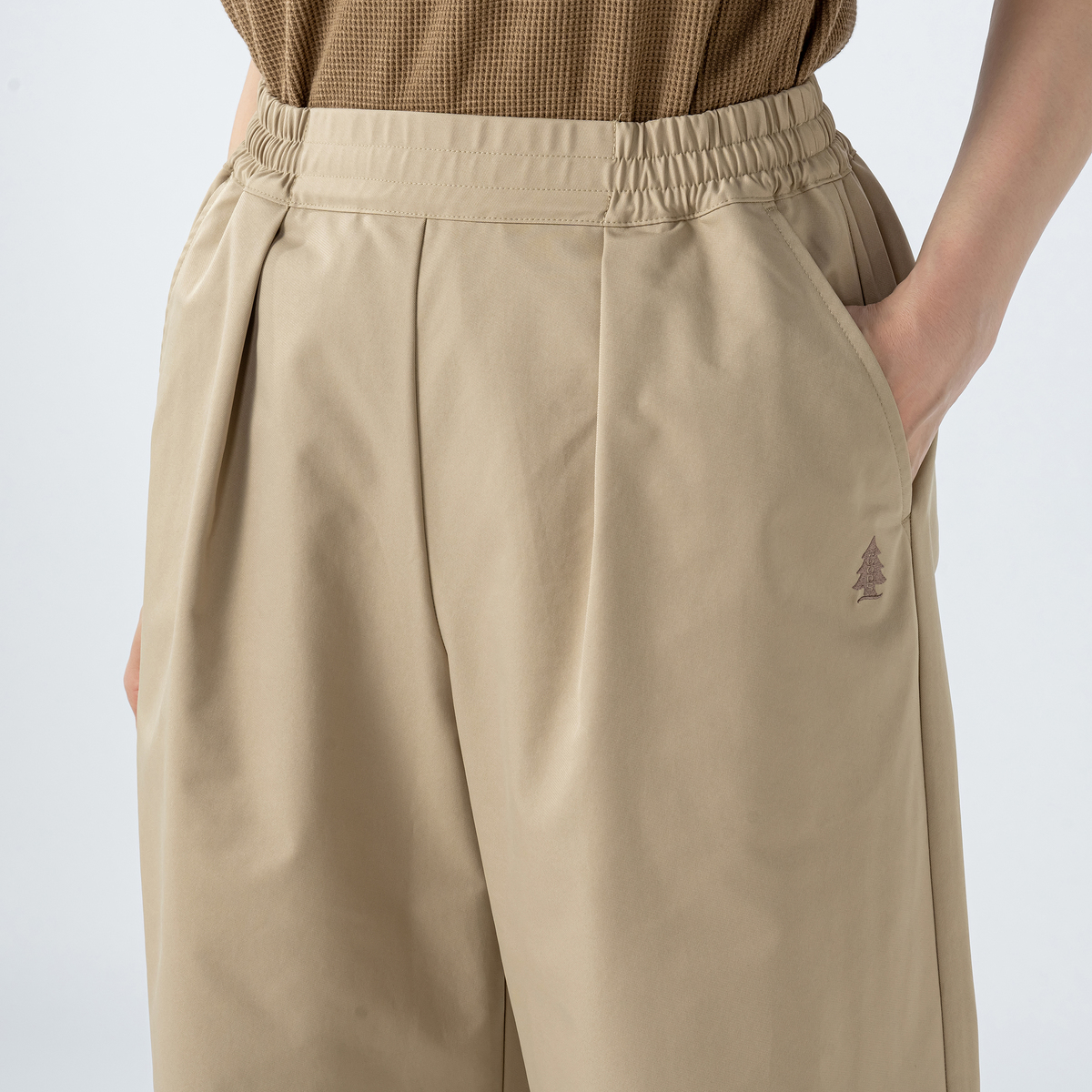 撥水性のある素材を使用したワイドパンツ。膝下には大きなポケット付きで、裾にはロールアップ機能があり、様々なシーンで活躍してくれそうです