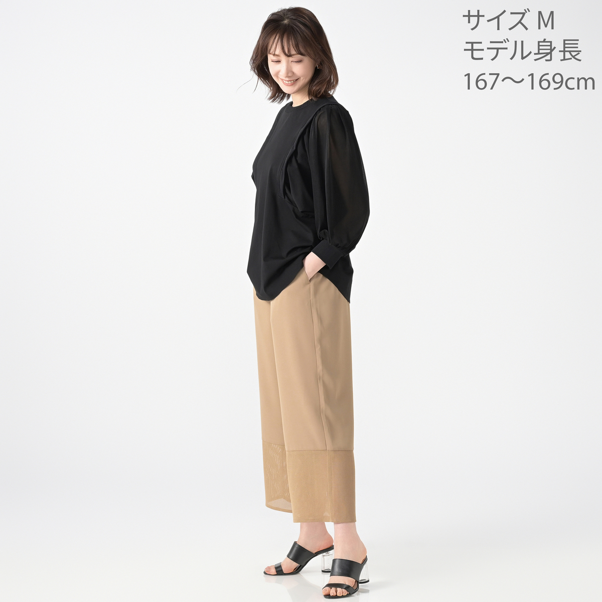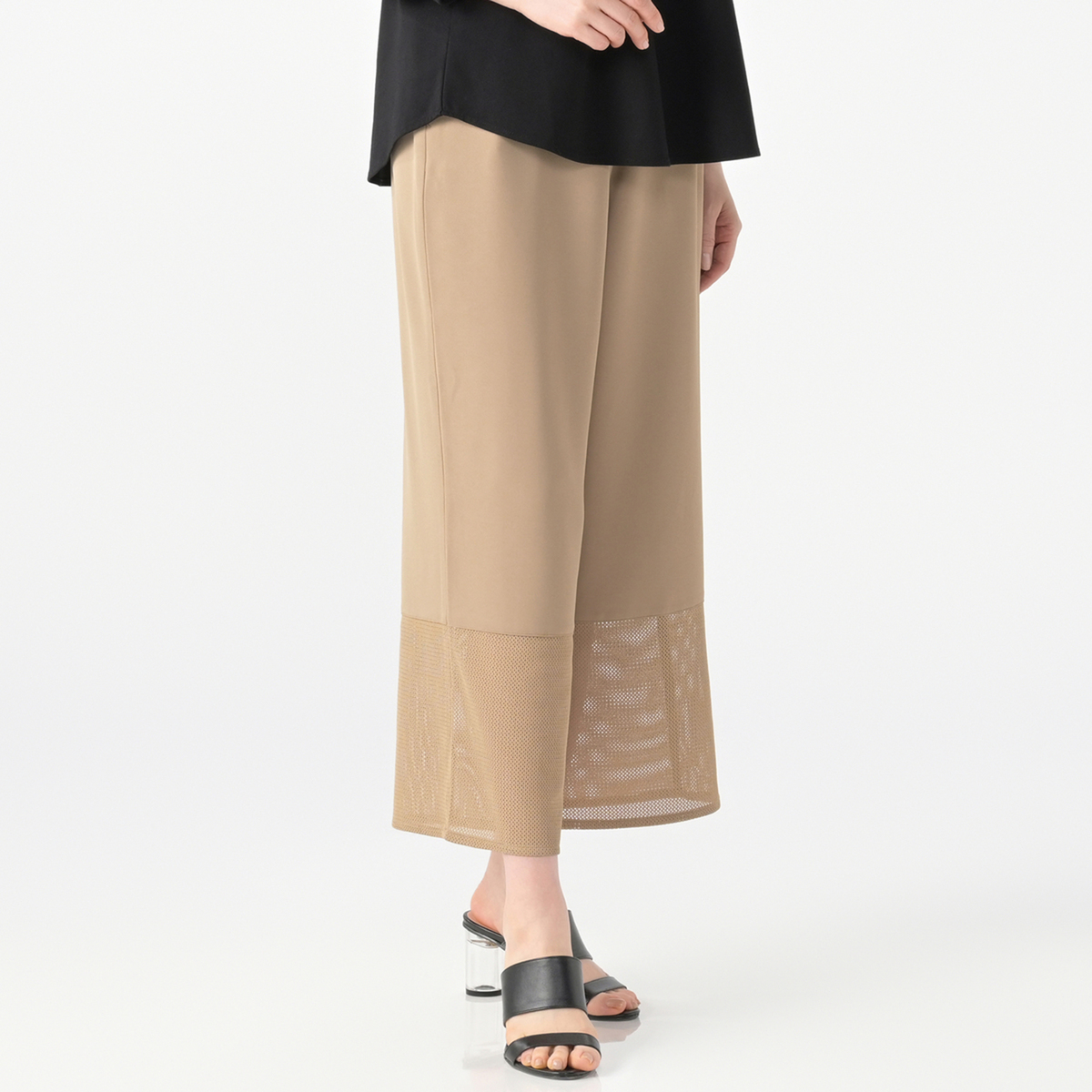 No. 740636 リアール ストレッチツイル&裾メッシュ切替ワイドパンツ