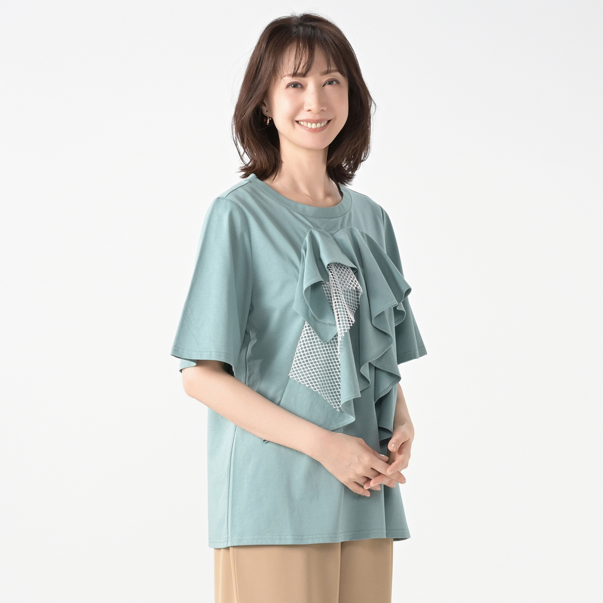 No. 740640 リアール 綿混天竺&メッシュデコラティブプルオーバー