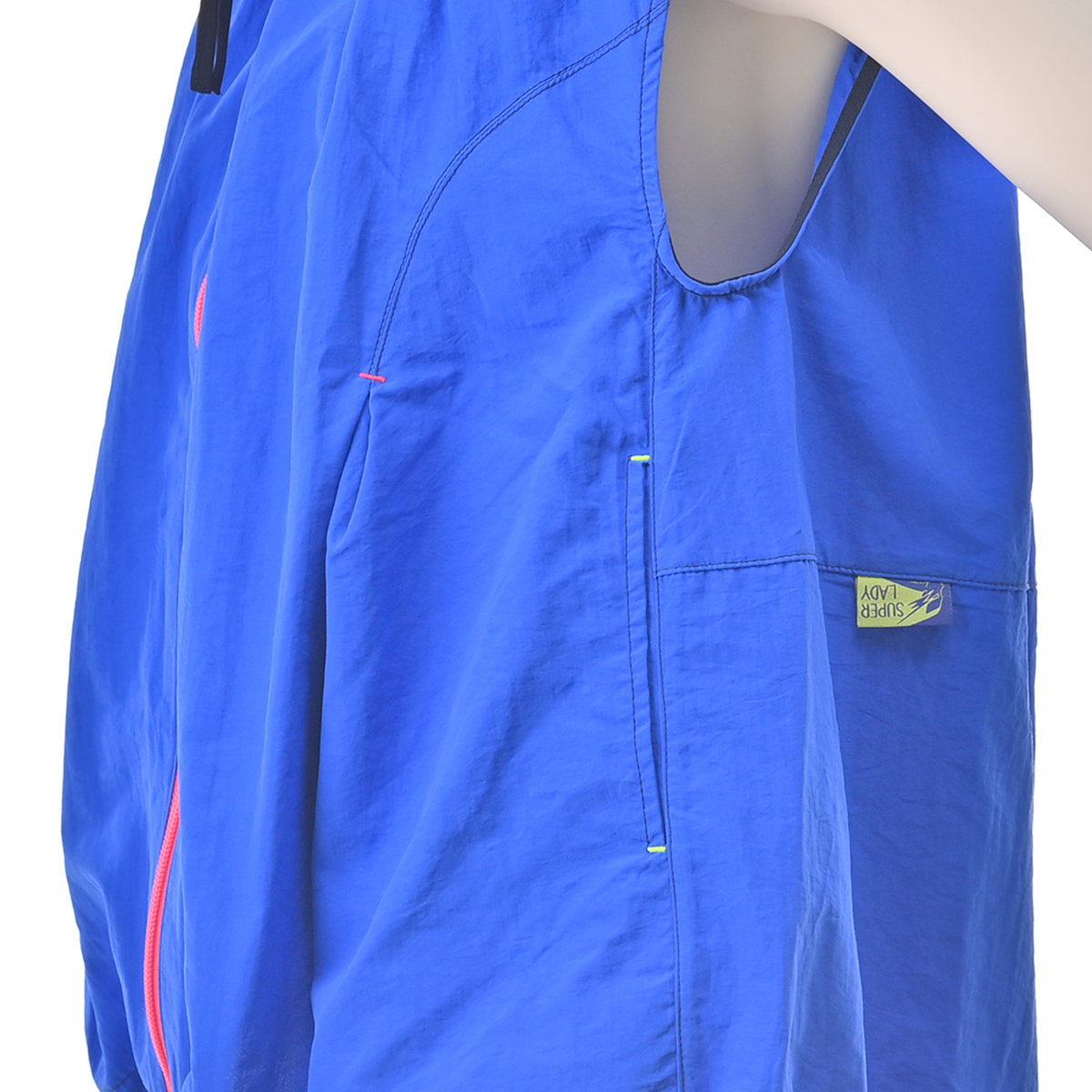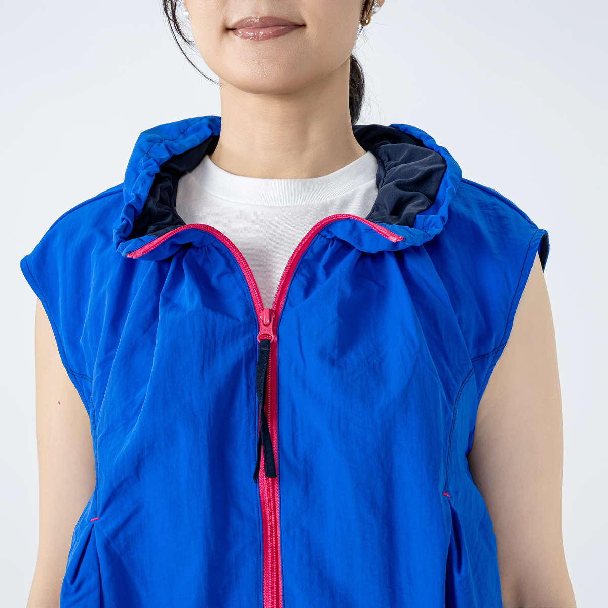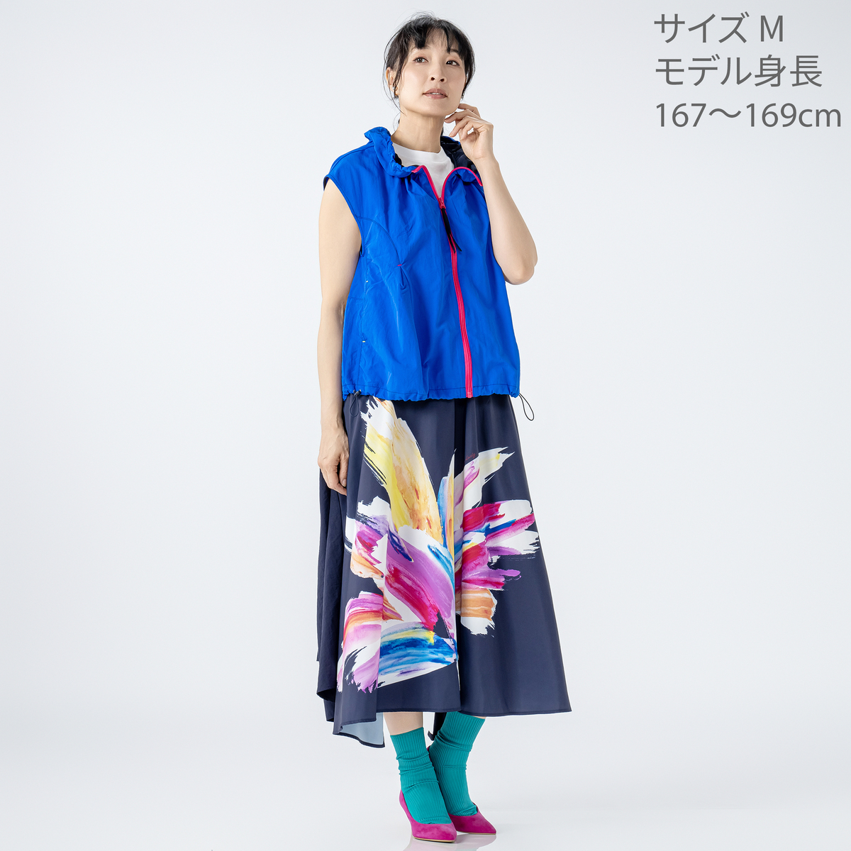 前身頃にはタックを取ってふわりとギャザーを出し、裾はスピンドルを絞めればコクーンシルエットに。随所に効かせた配色アクセントがSUPERLADYらしい1枚となっています。春、夏、秋と幅広いシーズンに着回していただける便利なアイテムです