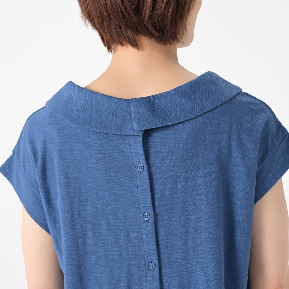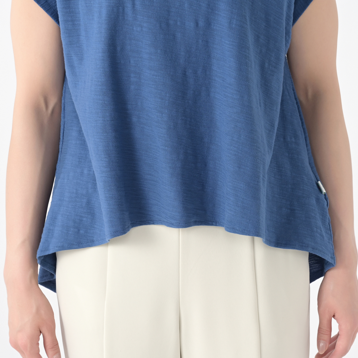 このスラブの生地好きです。夏は涼しいだろうと思います。ただ、デザインとは思いますが首の開きが大きすぎて下着が見えてしまうのです。サイズ交換も考えましたが、胸回りがきつくなりそうでやめました。ストレッチ素材ではないのでゆったり着用したいと思いました。大人でも着れるかわいい感じは好きでしたので残念です。