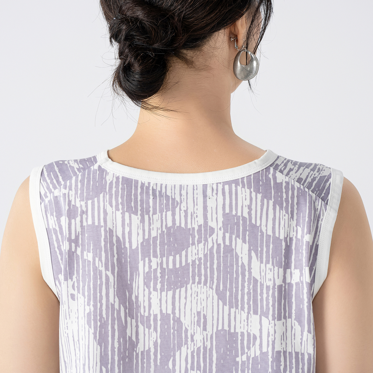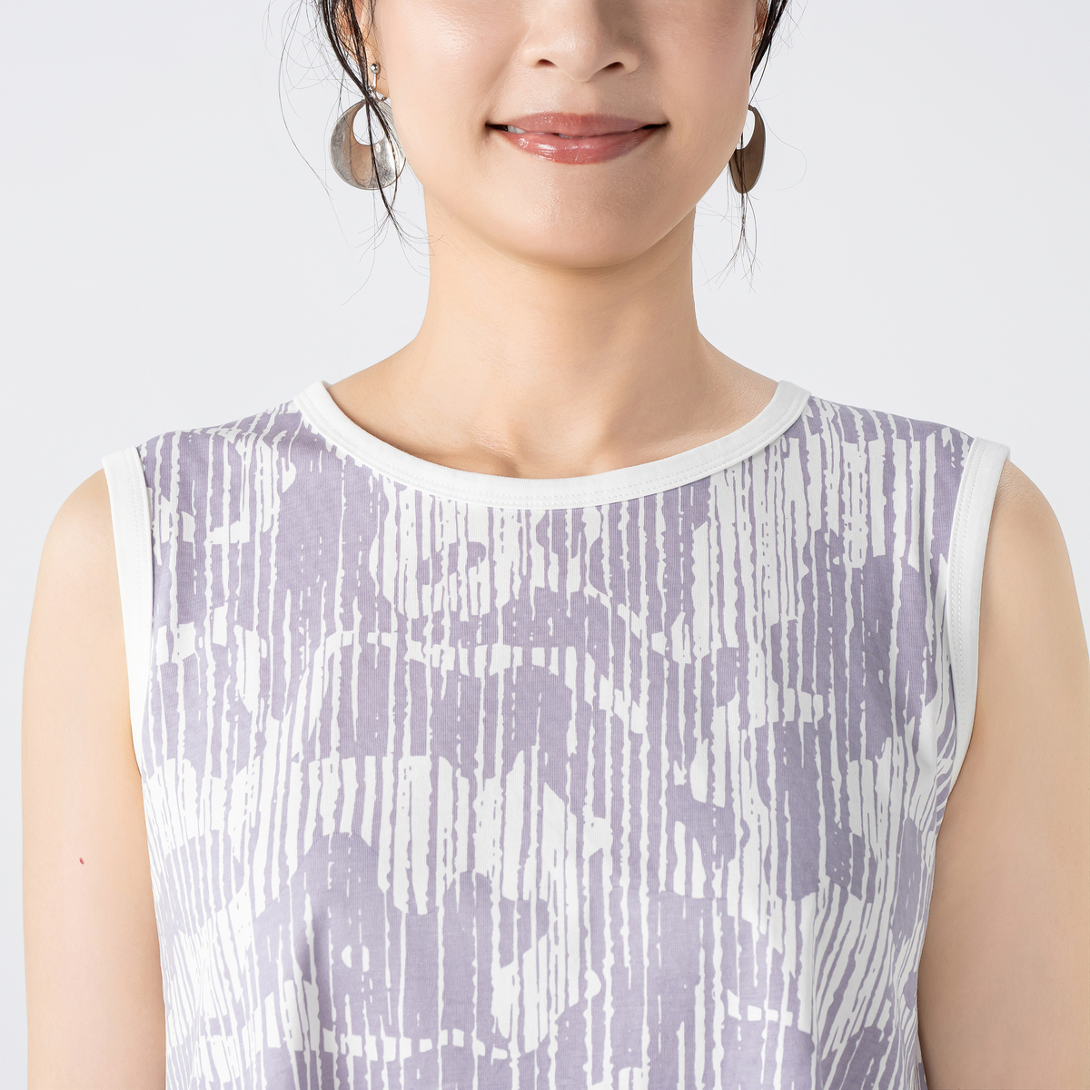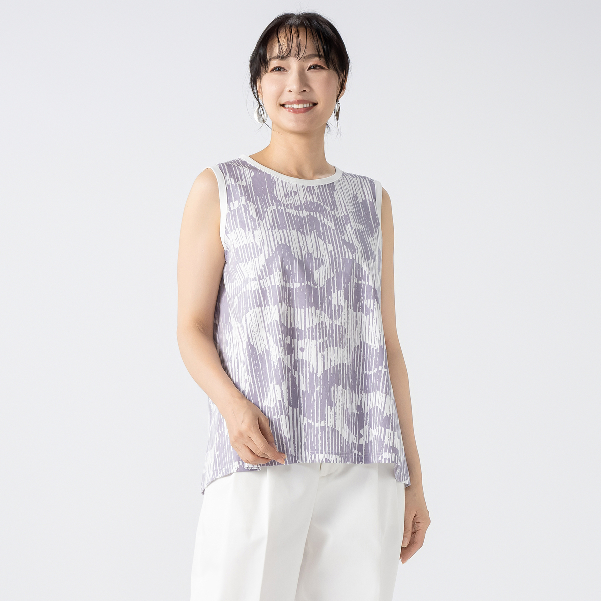 手描きのようなプリント柄が広がるタンクトップ。コーディネートにモードなアクセントを添えるアイテムです
