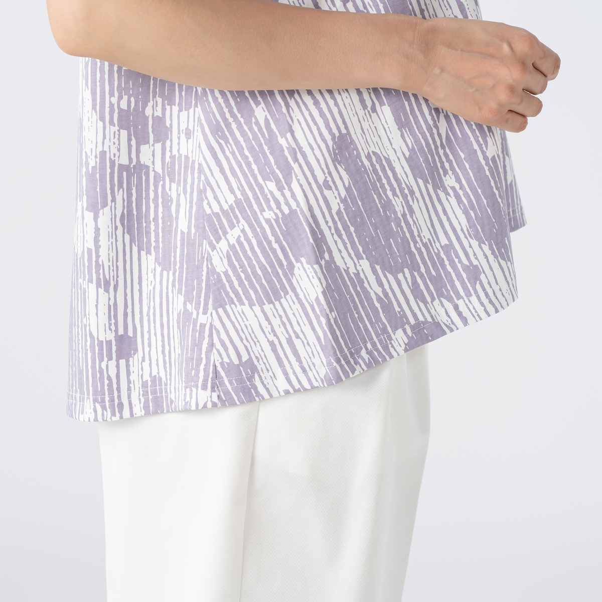柔らかなカットソー生地を使ったフェミニンな一枚。バストから裾に向かって広がるフレアラインが気になるお腹周りを自然とカバーしながら、ブランドらしく洗練された着こなしを叶えます