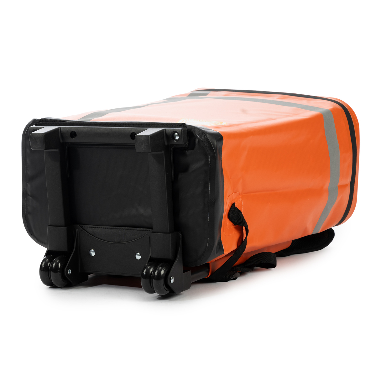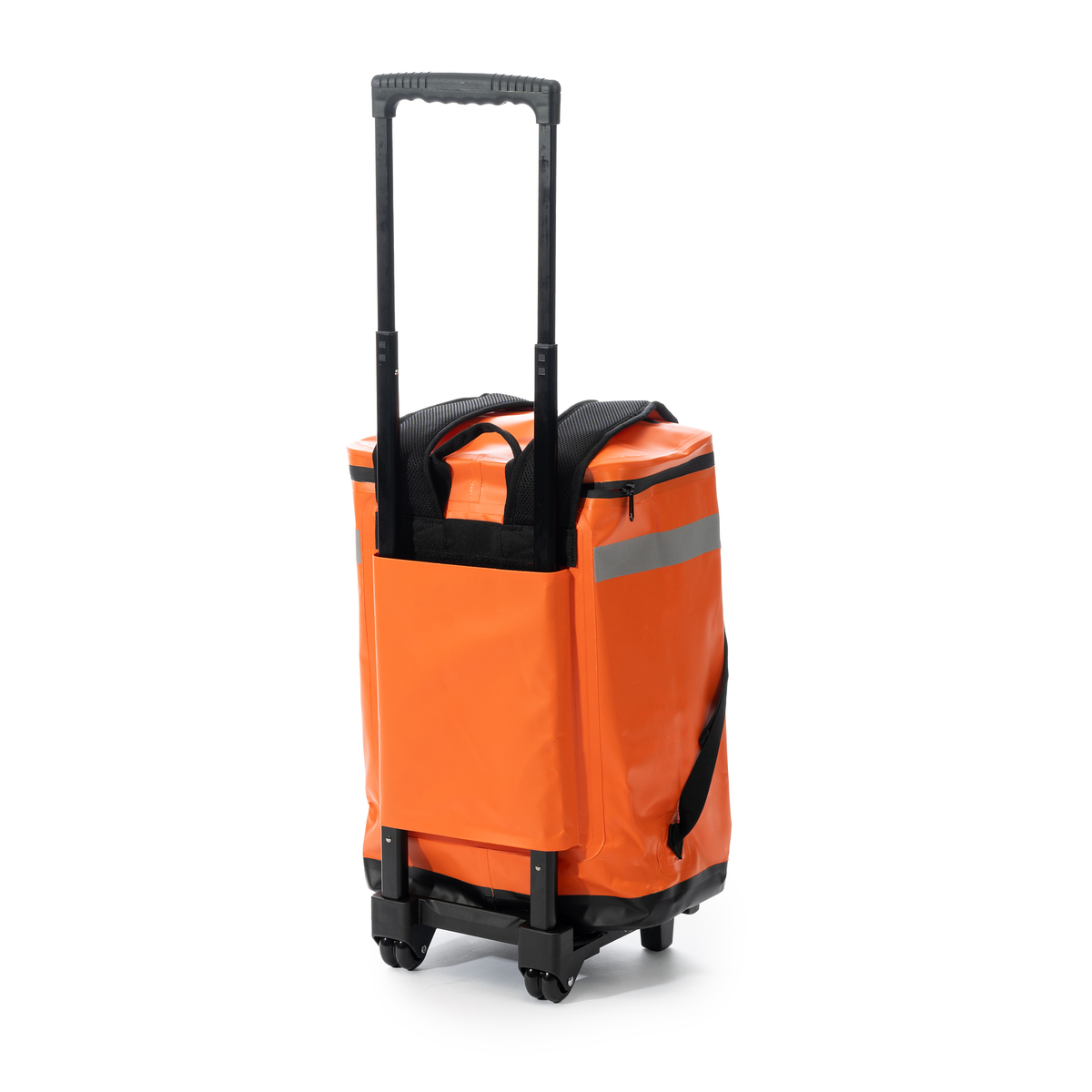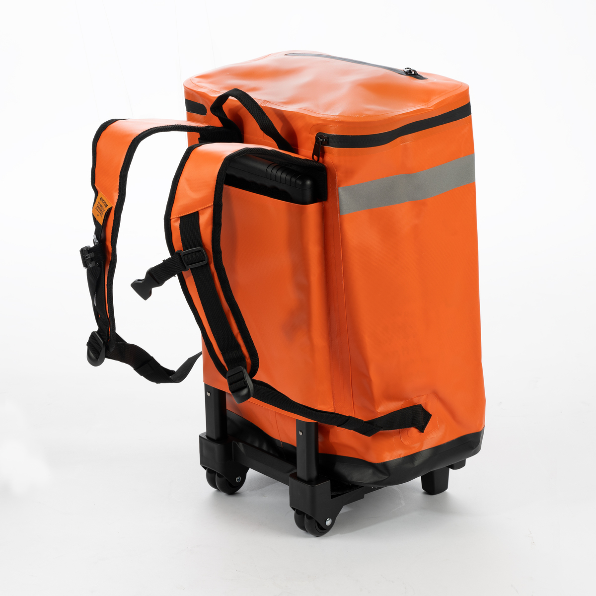 バッグは収納スペースが多く、荷物を追加して入れることも可能。キャリーローラー付きで、持ち運びにも便利です。貯水タンクになり、水を貯めることも可能(*1)。万が一の際には、簡易浮き具にもなります