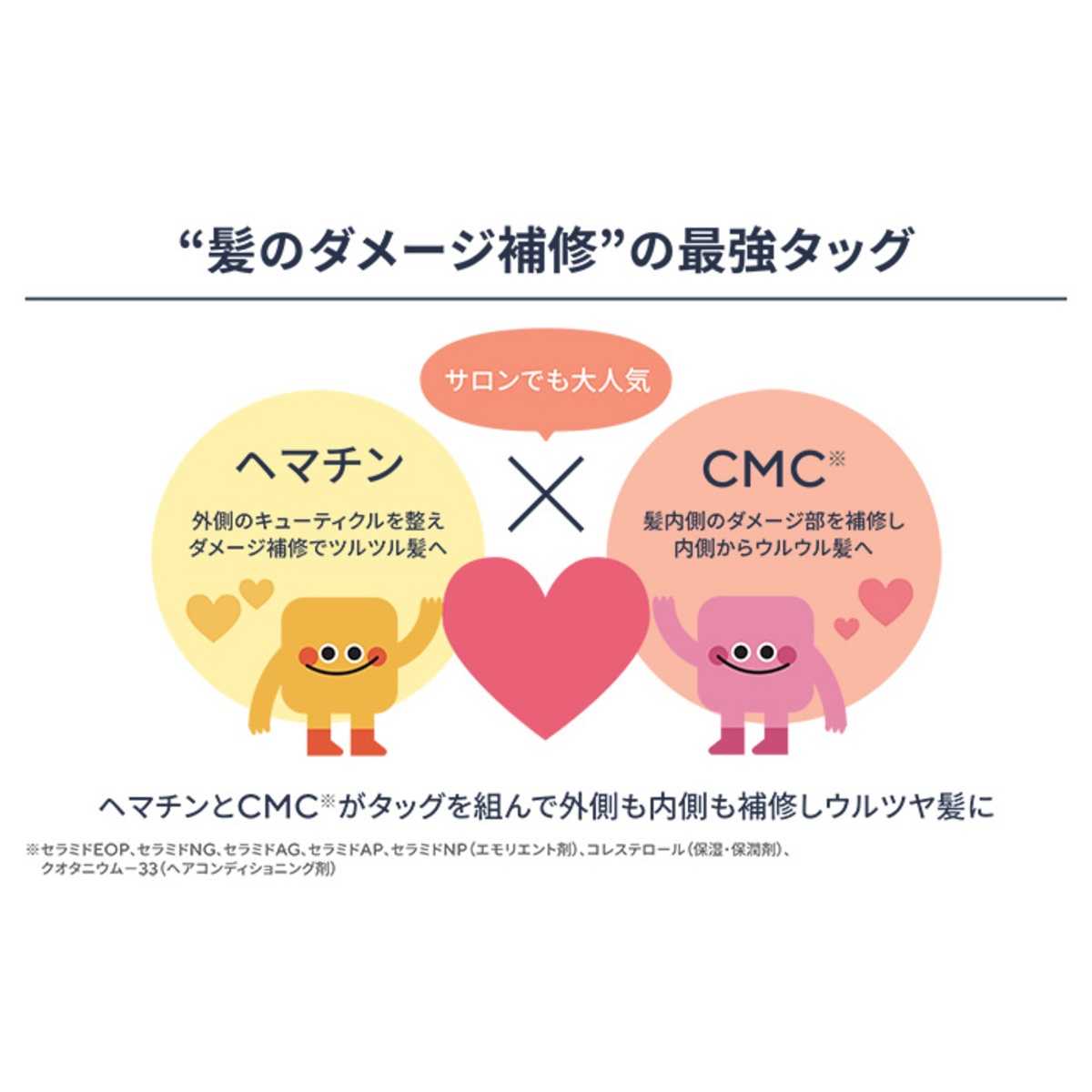 11種のアミノ酸*1、化粧品原料「Nano Repair-CMC5」*2配合の毛髪用美容液。シャンプーをすすいだ後、髪全体になじませてそのまますすがず、ヘアコンディショナーやヘアトリートメント等を髪に塗布。最後によくすすいでお使いください