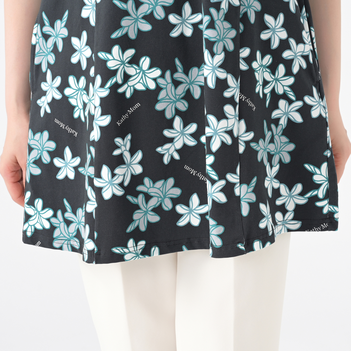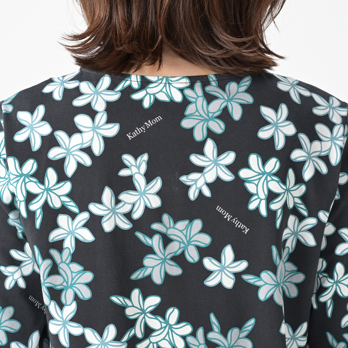 プルメリアを大胆にプリントした華やかなデザイン。全体的にゆったりしたシルエットで、使いやすいカットソーです