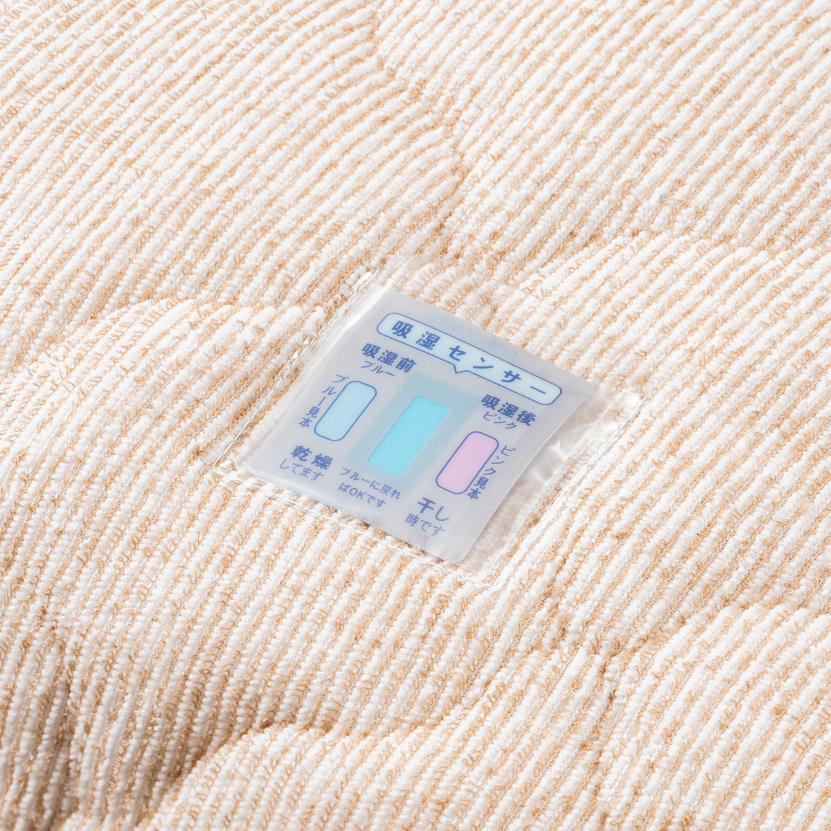 吸水速乾や防ダニ・防カビ・抗菌防臭など7つの機能を備えた5層構造で、季節を問わず快適に使えます。吸湿センサー付きで、色が変わったら天日干しすることで繰り返し使えます。