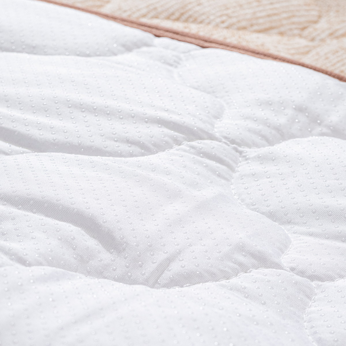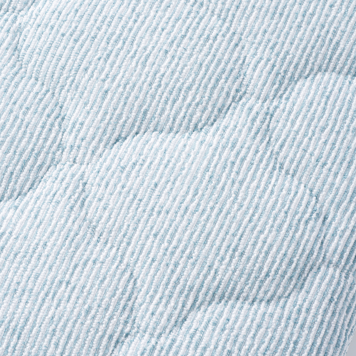 表地は吸水速乾生地、中身上層は防ダニ・防カビのわた、中層は吸放湿・消臭(汗臭)のシリカゲルシート、中身下層は抗菌防臭わた、裏地はノンスリップ加工生地を使用*1しています