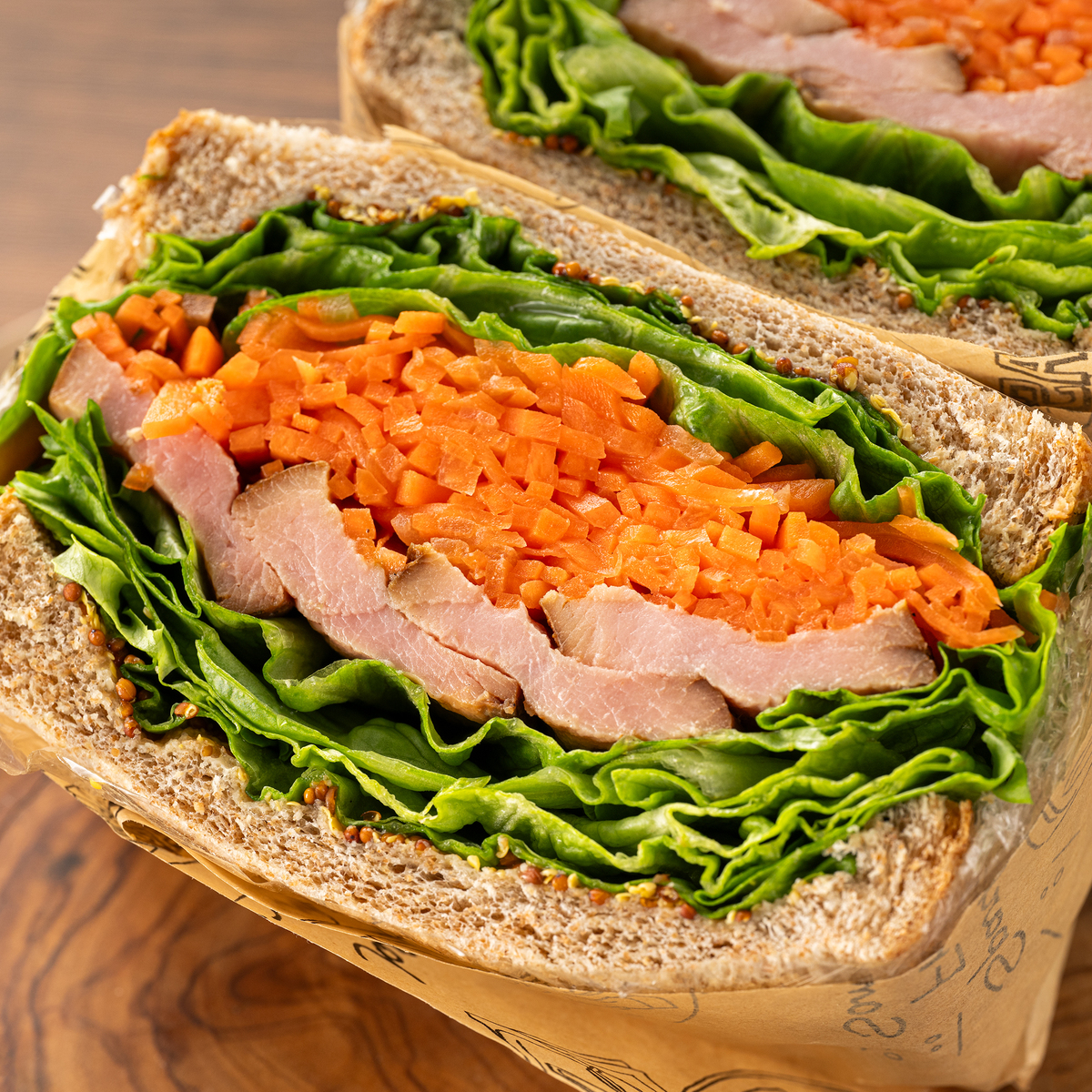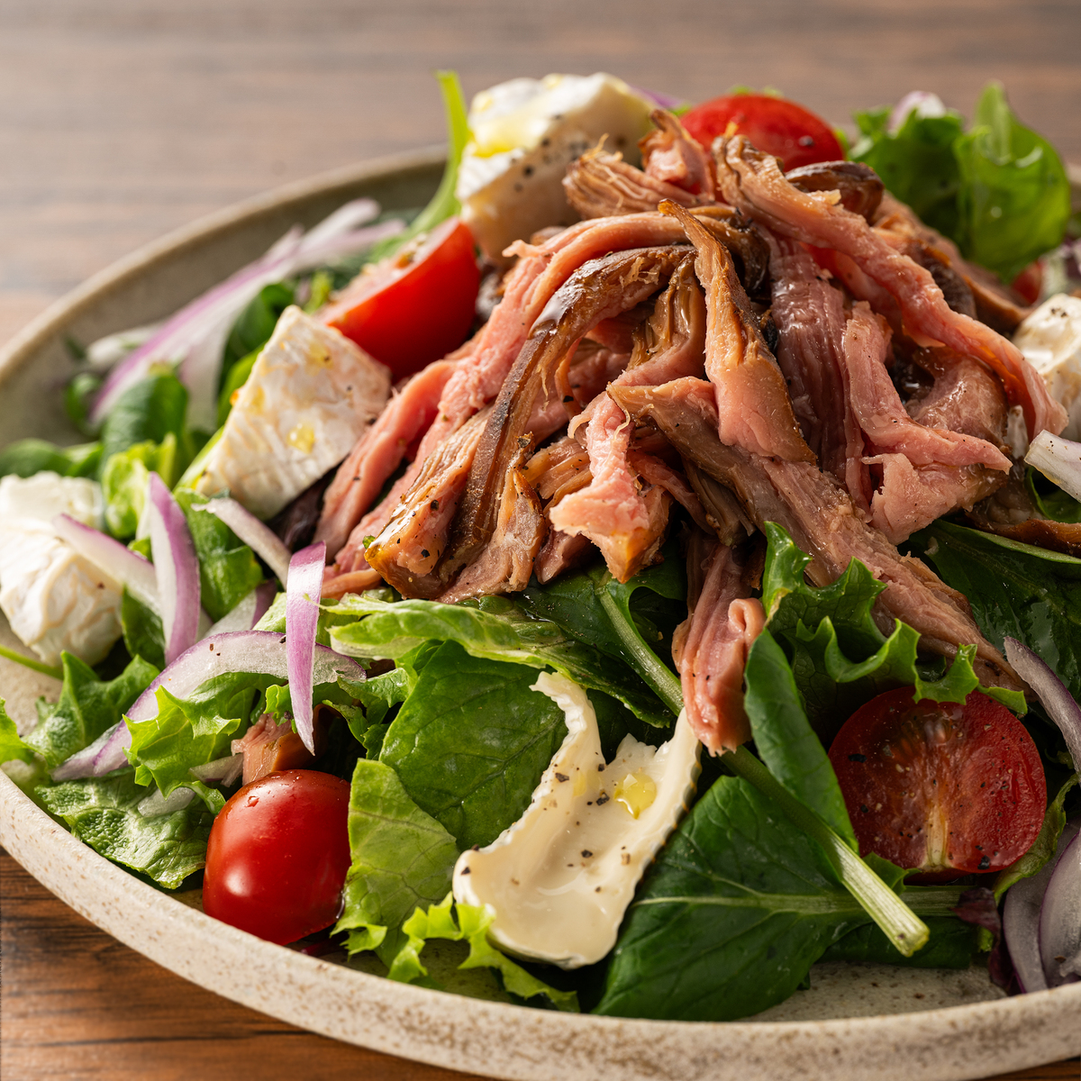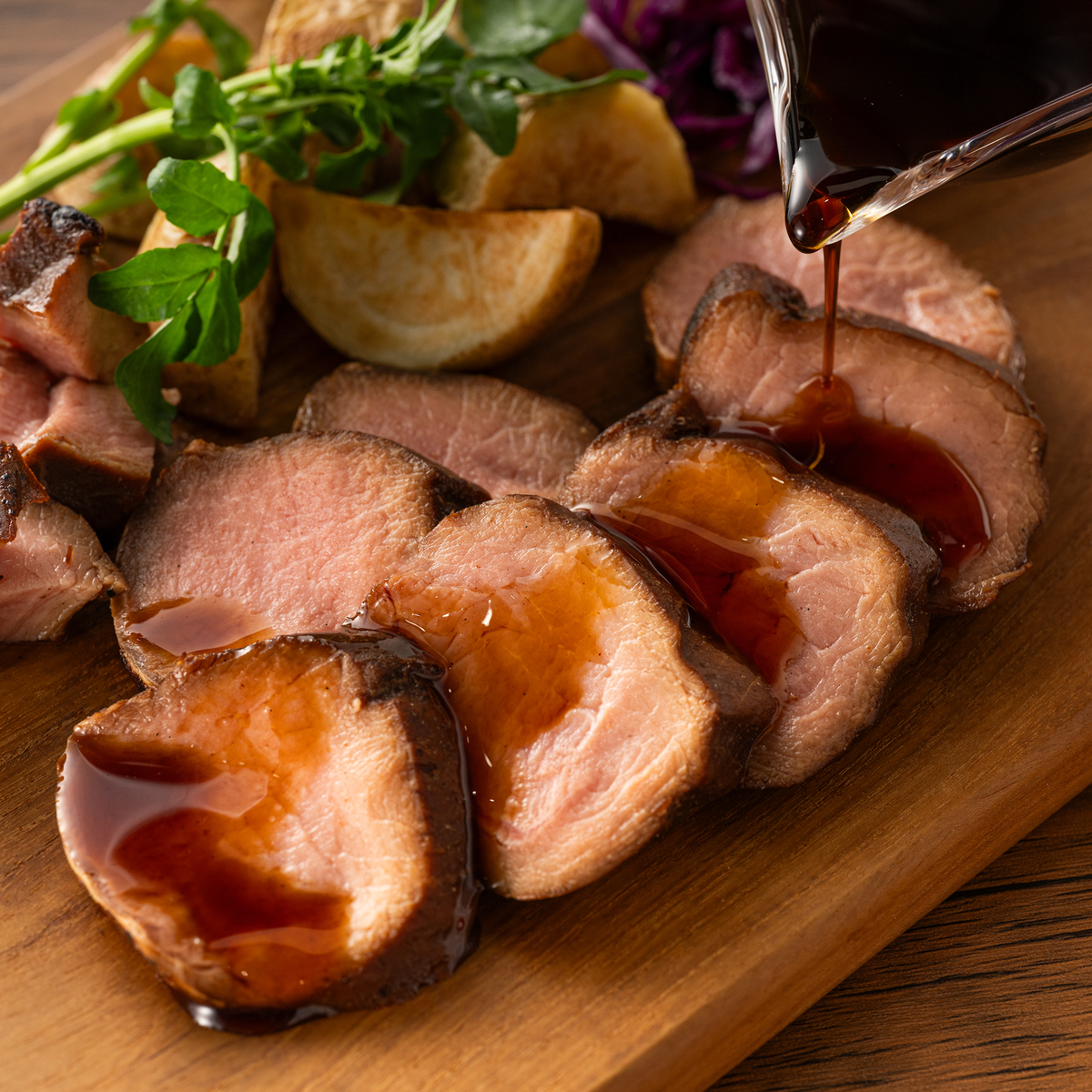 豚肉の中でキメが細かく、柔らかい部位とされている豚ヒレ肉を使用したローストポーク。周りは炭火でこんがり焼き、じっくり低温で加熱したジューシーな食感。炭火のいい香りが食欲をそそります。厚切りでもやわらかく、あっさりとした味わいです