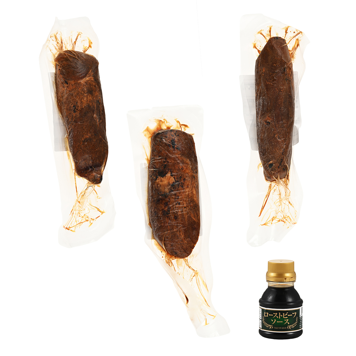 しょうゆベースにみりんを配合した特製のソース付き。ブロック状でお届けしますので、お好みの厚さにスライスしてお召し上がりください。スタンダードに薄くスライスするのはもちろん、厚めに切って温める程度に軽く焼いてステーキにするのもおすすめです