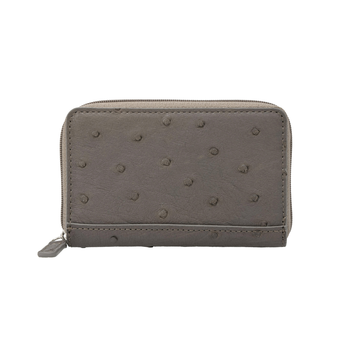 [サイズ(約)] 縦8.5×横14×厚み2cm [重量(約)] 60g [素材] 表地:オーストリッチ革 内側:牛革・ポリエステル ※裏地有 [仕様] 開閉:ファスナー式 [ポケット] 内側:カードポケットx2 オープンポケットx3 外側:オープンポケットx1 【ベトナム製】