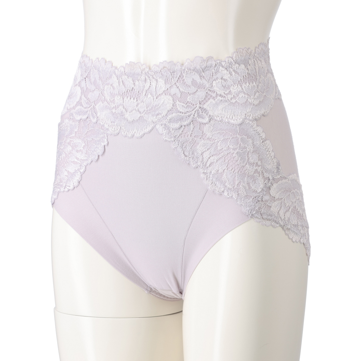 光沢感のある華やかなピオニー(芍薬 しゃくやく)柄のオリジナルレースを、ウエストと足口に使用しています。伸縮性があり、締め付け感を軽減します。