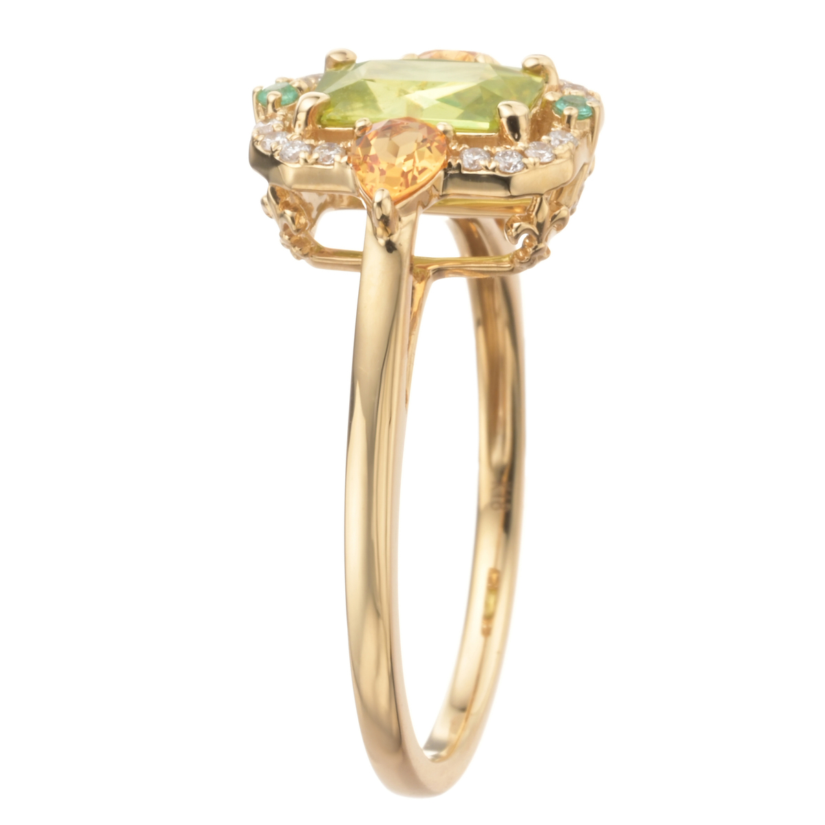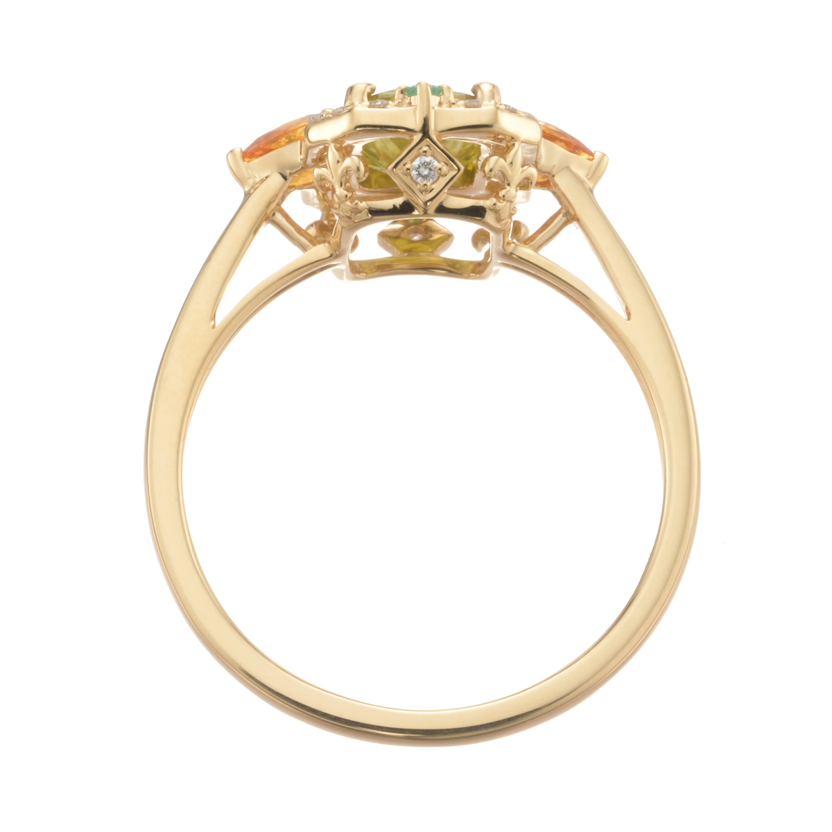 素材: [スフェーン] ファンシーカット 爪留め/接着 1石 0.80ctUP [ダイヤモンド] ラウンドシェイプ 爪留め 18石 合計0.07ctUP [サファイヤ] ペアシェイプ 爪留め 2石 [パライバトルマリン] ラウンドシェイプ 爪留め 2石 [地金] 18Kイエローゴールド 最大幅(約) 11.0mm 最小幅(約) 1.5mm 総重量(約) 2.4g ■受注発注商品のためデザイン・価値に影響のない範囲で仕様が変わる場合がございます ■素材の大きさ・形・色合い、製品のサイズは1点1点多少異なります 【日本製】