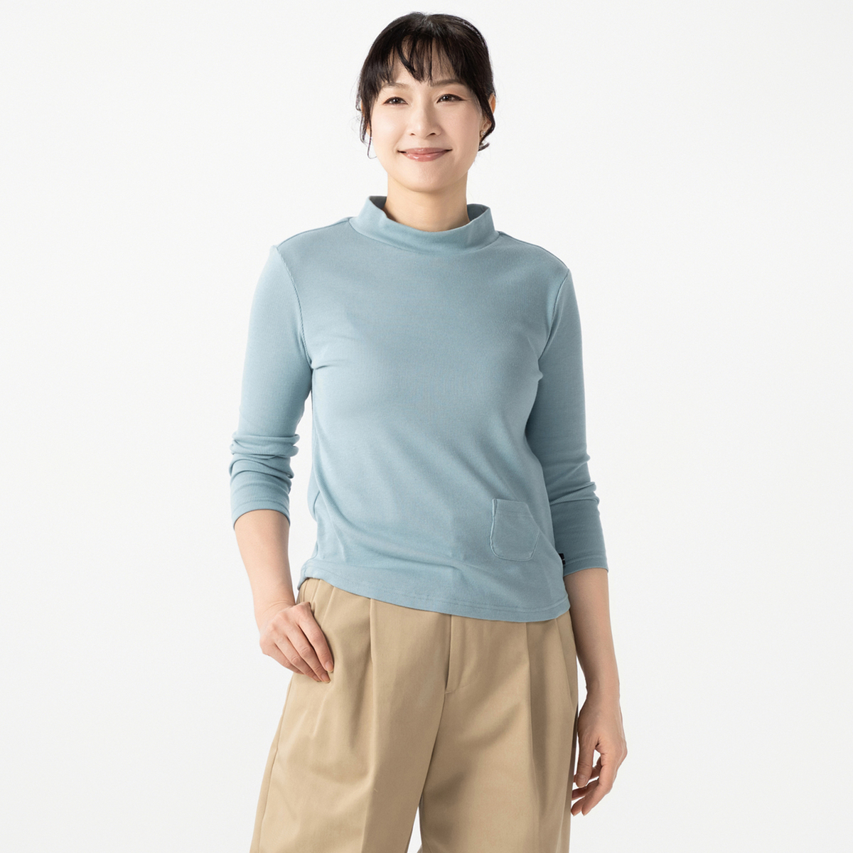 特にハイネック好きではないので悩んだのですが、こちらのミルキーブルーのお色目が自分の持ってる色々なボトムに合う事! 最近、ますますデブ化が進み悩んでたのですが、このトップスのおかげでコーデの幅が広がりました! プチポケットもアクセントで可愛いですし、着丈が短めなのでスカートとの相性もバッチリです。 ミルキーブルーはグレー系やホワイトやベージュにも様々なカラーに合うのでオススメです。 ご参考まで、F75でLサイズです。 着心地も良いです。 価格が、主婦にはもう少しお安くしていただけたら嬉しいのですが買って良かったです。
