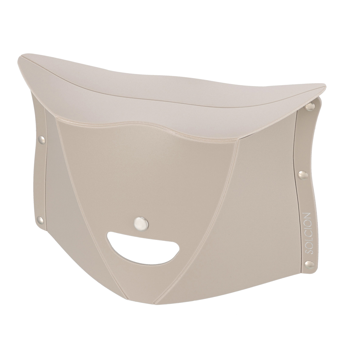 [サイズ]幅×奥行×高さ 組み立て時:31.5×19×21cm 折りたたみ時:37.5×3×24.5cm [重量] 約290g [材質] ポリプロピレン、スチール [耐荷重] 100kg [使用方法] <組立方> 1.スナップボタンをはずします 2.持ち手を掴んで横に広げながら座面中心を押込みます 3.座面が固定されれば組立完了です。(稀に座面の片側が浮くことがございますが、そのままお座りください。) <たたみ方> 本体をひっくり返し、内側から座面を掌で押すと固定が外れます ※イスとしてご使用直後は、開き癖のため、スナップボタンが留まらなくなる場合がありますが、たたんだ状態で重量をかけることにより、留まるようになります [注意事項] ※取説に従って、正しく組立られた状態で使用してください。正しく組立られていない場合、転倒する恐れがあります ※段差がある場所や、傾斜が箸しく大きい不安定な場所では、使用しないでください。破損、転倒する恐れがあります ※安全の為、破損、変形した商品は使用しないでください。ケガなど思わぬ事故の恐れがあります ※座る目的以外の用途に使用しないでください ※組立、折りたたみの際は、隙間に指や手を挟まないよう注意してください ※お子様が使用する場合は保護者のもとで使用してください ※本商品を投げたり、ぶつける等、乱暴に扱わないでください。破損、変形などの恐れがあります ※本商品を加工、改造等はしないでください ※真ん中に座って使用してください。角に座りますと変形の恐れがあります ※保管の際は直射日光のあたる場所を避けてください ※本商品を火気のそばで使用、保管しないでください ※商品が汚れた場合は軽く湿らせた布で拭き取ってください。汚れが落ちにくい場合は、薄めた中性洗剤を湿らせた布にしみ込ませ、拭き取ってください。シンナーやベンジン、アルコール系の溶剤は使用しないでください。色落ち、変色、本体が変形する恐れがあります 【中国製】