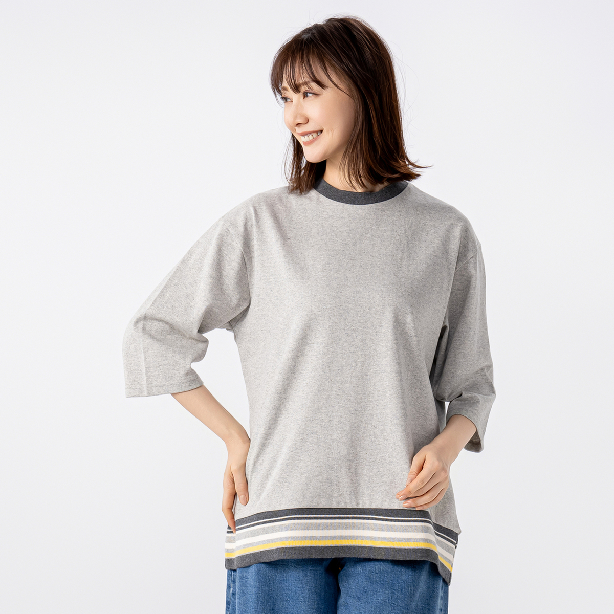No. 741346 Carney タフコットン 裾ボーダー7分袖プルオーバー