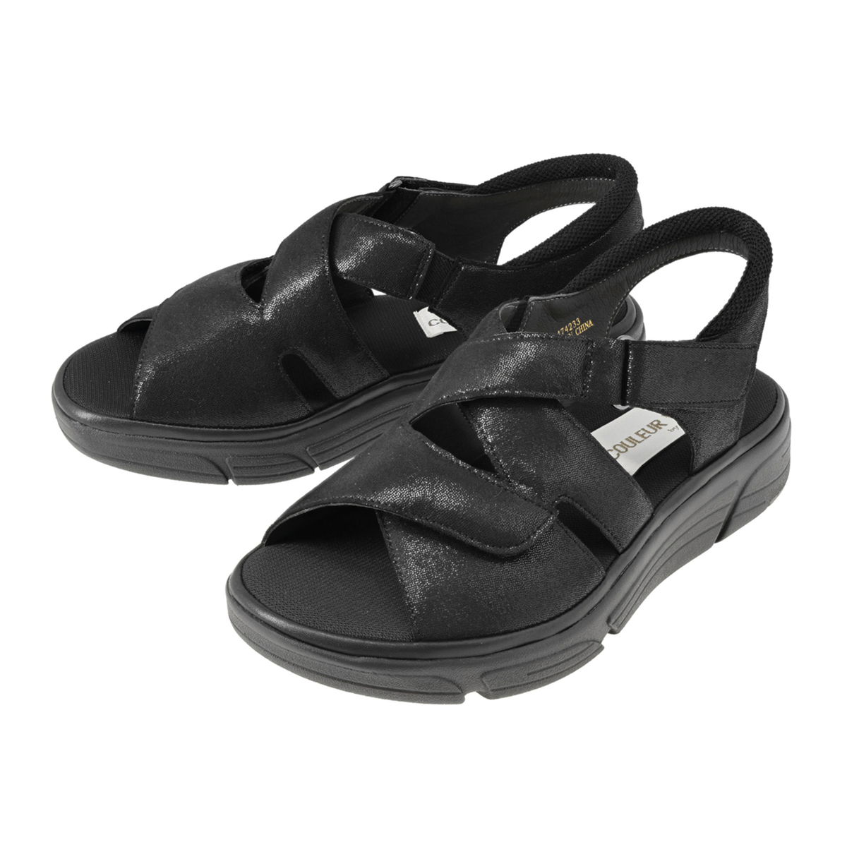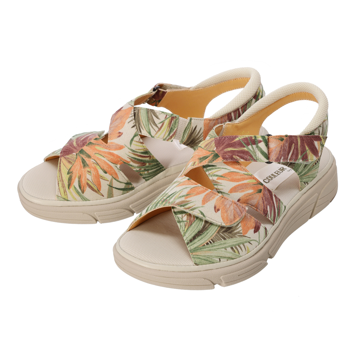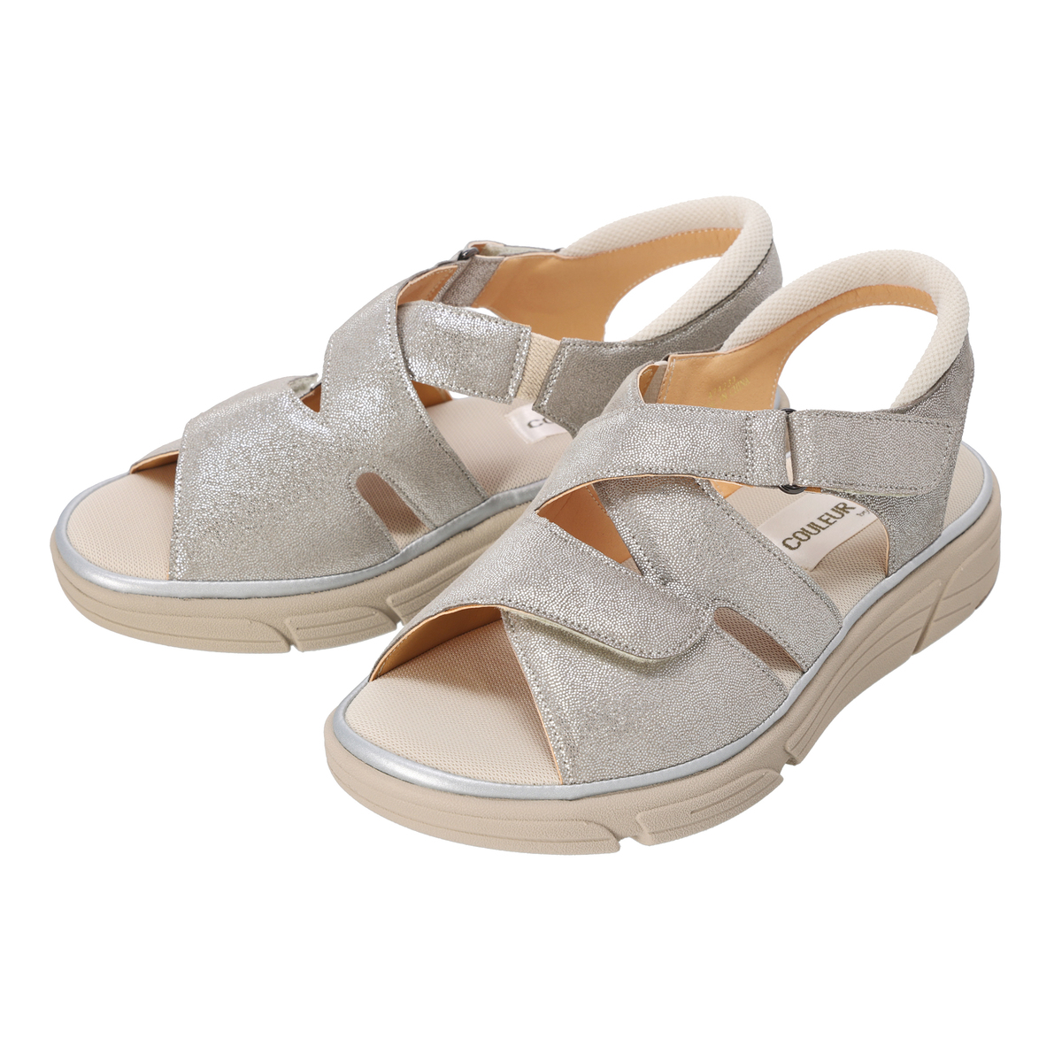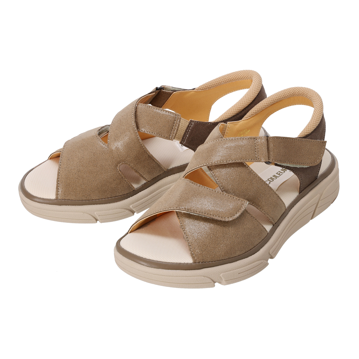 面ファスナーで幅の調節ができるクロスサンダル。片側ずつ調整できるので、左右でサイズが違う足やむくんだ時もやさしく馴染みます。ベルトの一部にゴムを使っているので、幅広、外反母趾、幅の狭い足にも心地よくフィットして、歩きやすいです