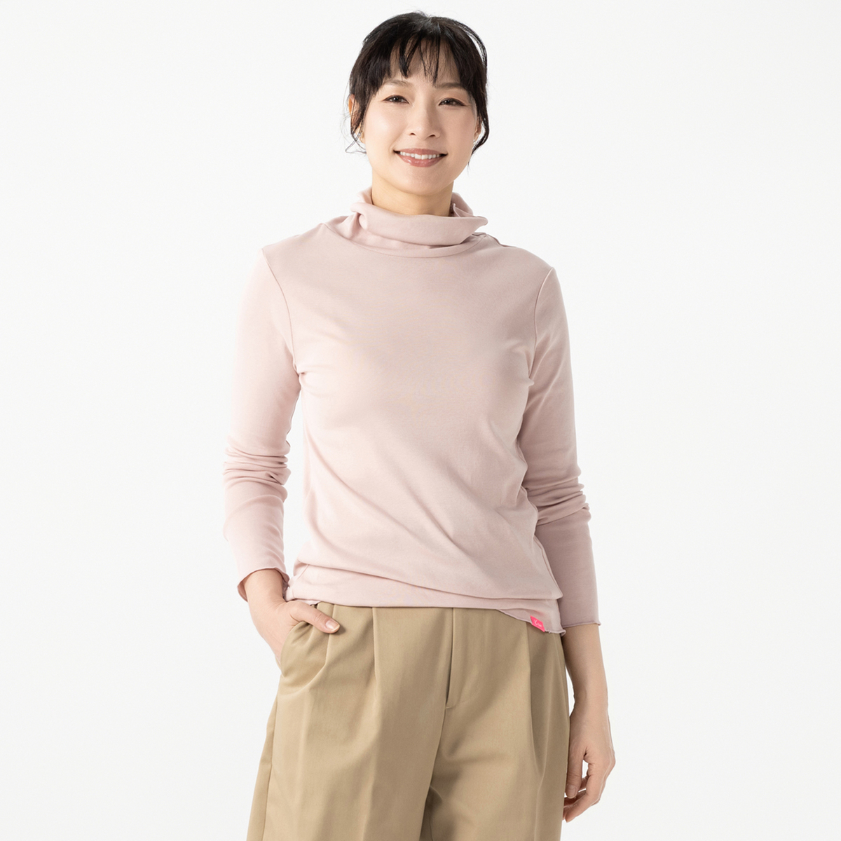 綿100%のフライス素材で作られた、定番のハイネックインナー。甘撚りのフライス編みで仕立てています