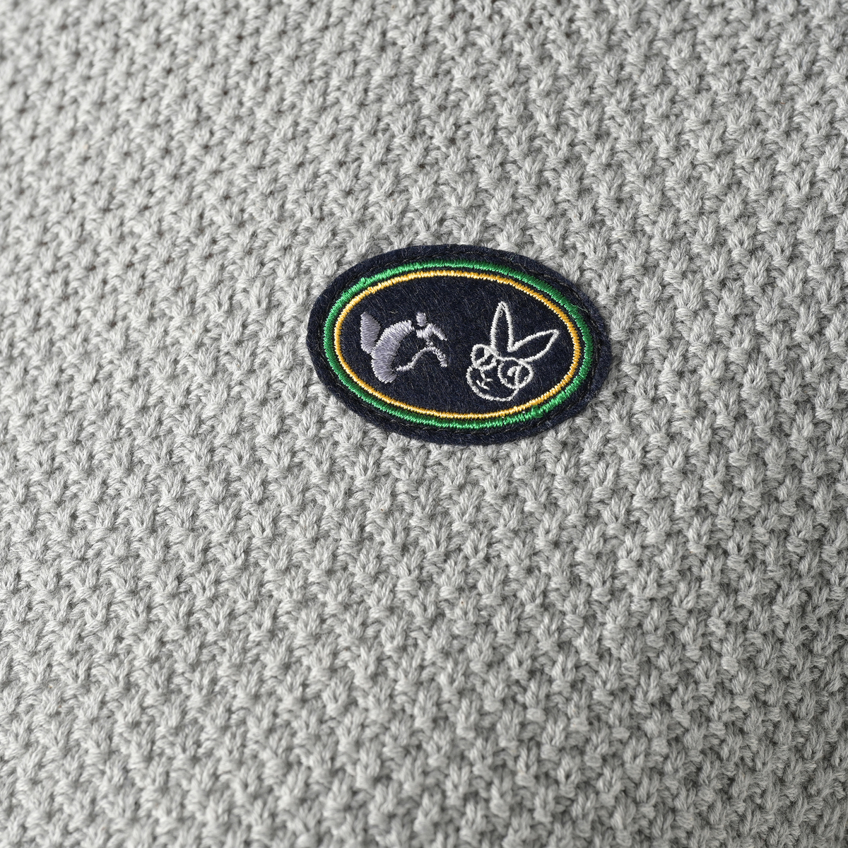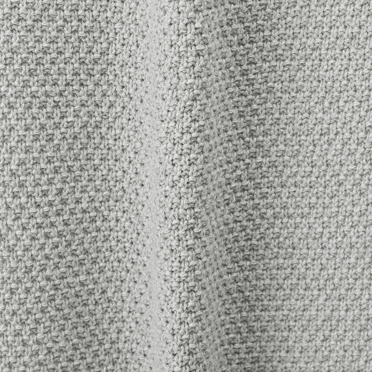 しっかり感のある7Gの地柄編みに仕上げた、チクチクを感じにくい綿糸使用のニット。身頃は凹凸のあるニットらしい地柄の鹿の子編みに。部分的に2段リブに見えるように柄変化をつけています