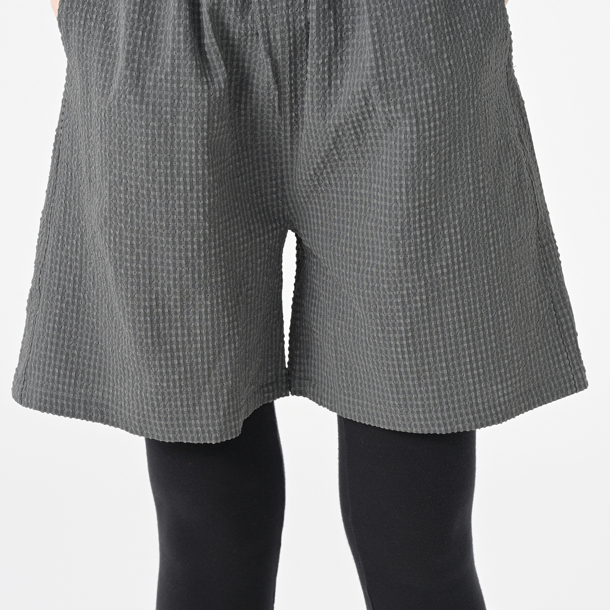 [商品寸法(ヌード寸法)cm] サイズ ウエスト ヒップ 股下 S: 66(64〜68) 106(82〜90) 15 M: 70(68〜72) 108(86〜94) 15 L: 74(72〜76) 112(90〜98) 15 LL: 80(76〜84) 118(95〜105) 15 3L: 88(84〜92) 126(103〜113) 15 サイズ 前股ぐり わたり幅 S: 34.5 32 M: 35 33 L: 35.5 34 LL: 36.5 36 3L: 38 38.5 [ウエストゴム] 全体に有 [素材] ポリエステル100% [お手入れ] 洗濯機洗い可 [注意事項] ※商品寸法の誤差は多少発生します。ご了承下さい ※無蛍光洗剤使用 ※着用時の摩擦(特に雨や汗により湿った状態での摩擦)で他の衣料やバッグ、椅子やソファー、車のシート等に色が移る場合がありますので ご注意下さい。万が一移染した場合は、移染した衣類等の早めのお手入れをお願いします ※濃色は水洗いで色落ちや色移りの恐れがありますので淡色との洗濯は避け、洗濯後は速やかに干して下さい。長時間のつけ置き洗いや濡れたままの重ね置きはお避け下さい ※この商品は長時間日光に当たり続けると色あせの恐れがあります。ご注意下さい。洗濯後は必ず陰干しして下さい ※生地の特性上、過度の引っ張りを受けると縫い目が開いたり、破れたりすることがありますのでお取り扱いにはご注意下さい ※型くずれした場合は、生地表面の立体感をつぶさないよう、浮かせながら軽くスチームをかけてください 【中国製】