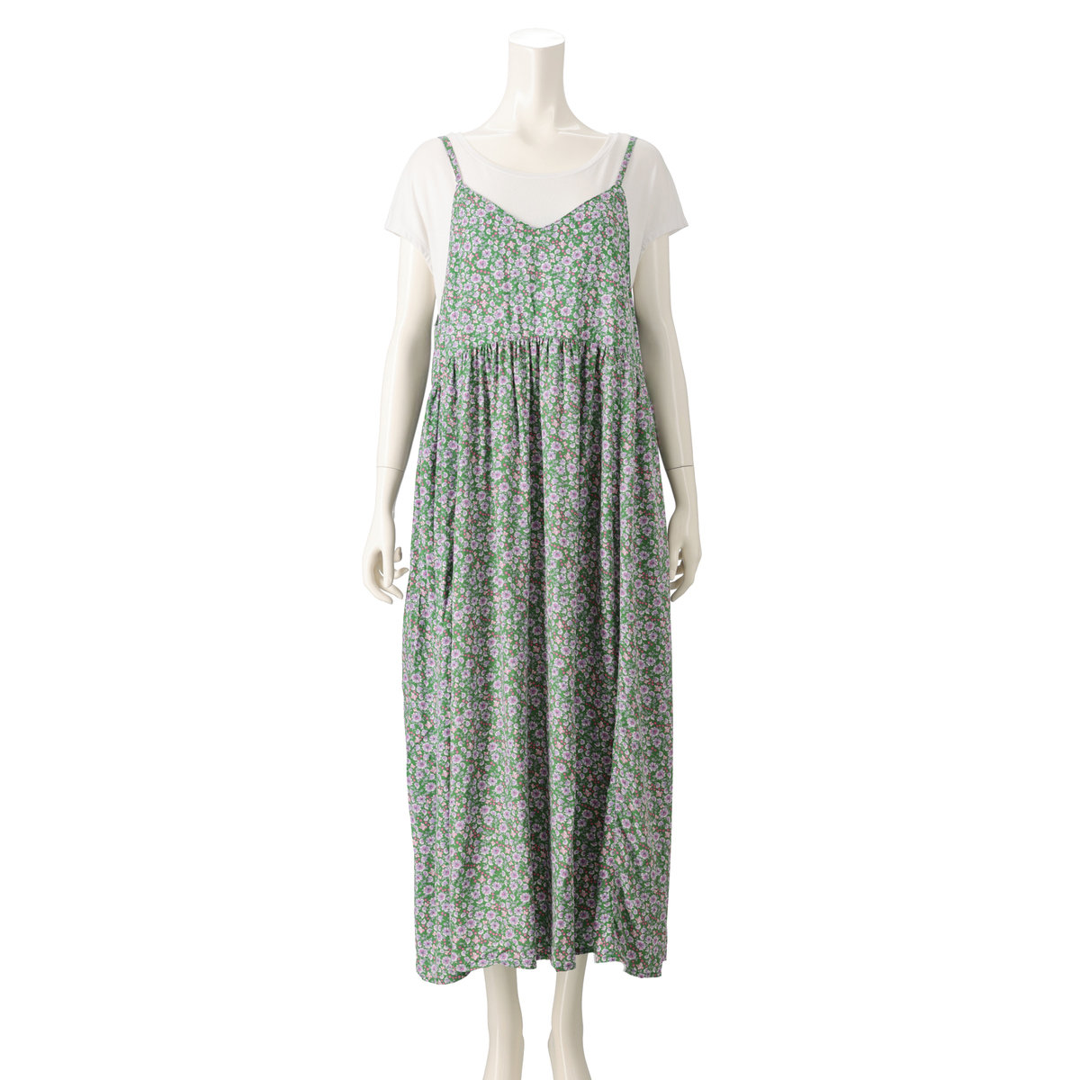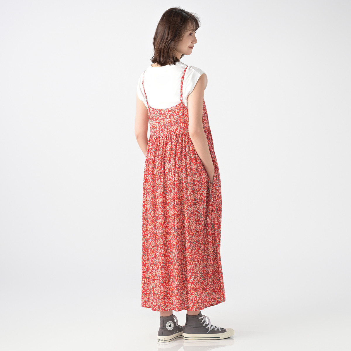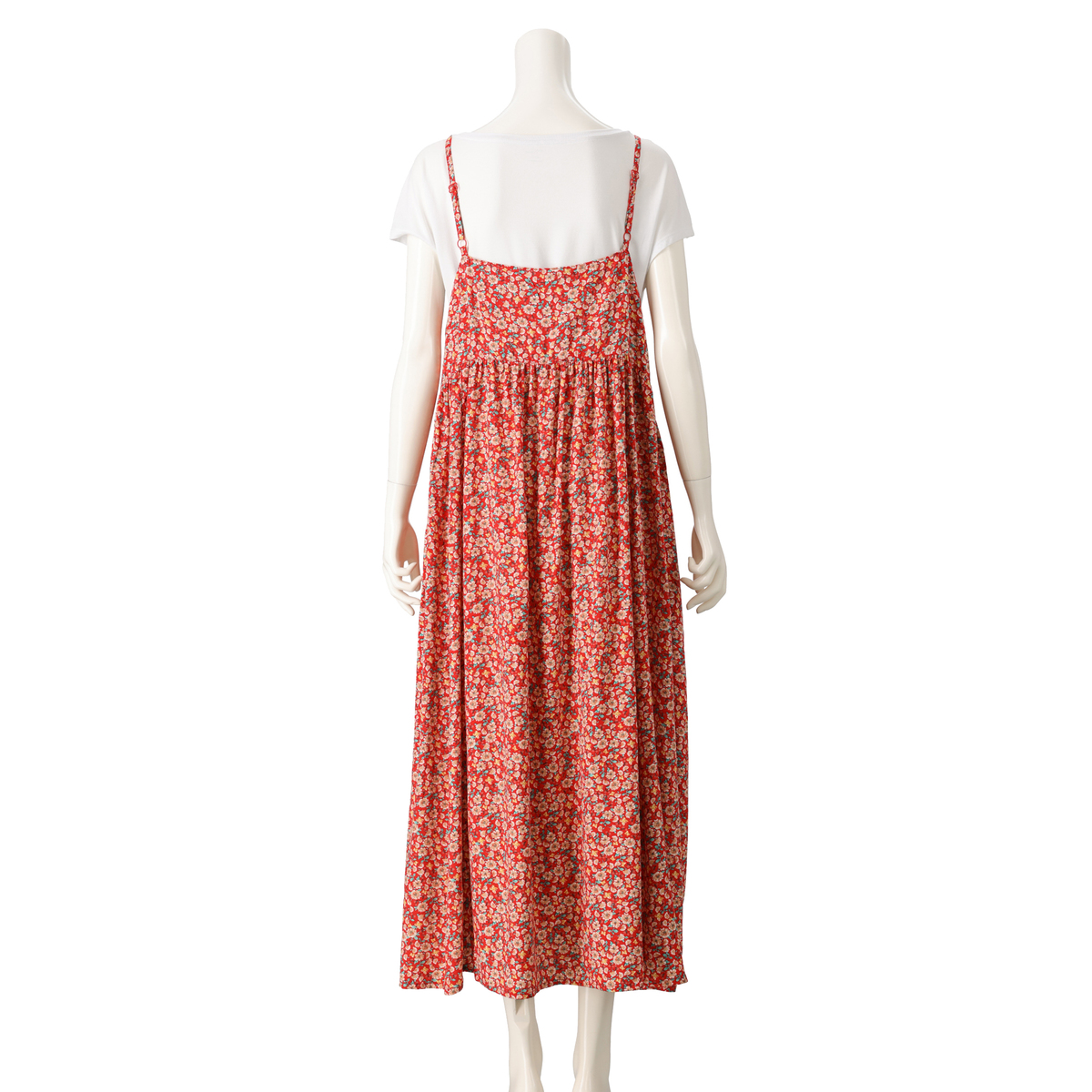ふんわりフレアシルエットのロング丈花柄キャミワンピース。スカート部分に程よくギャザーを入れました。肩紐は調整可能で、小柄な方から身長が高めな方まで着用しやすいデザインです