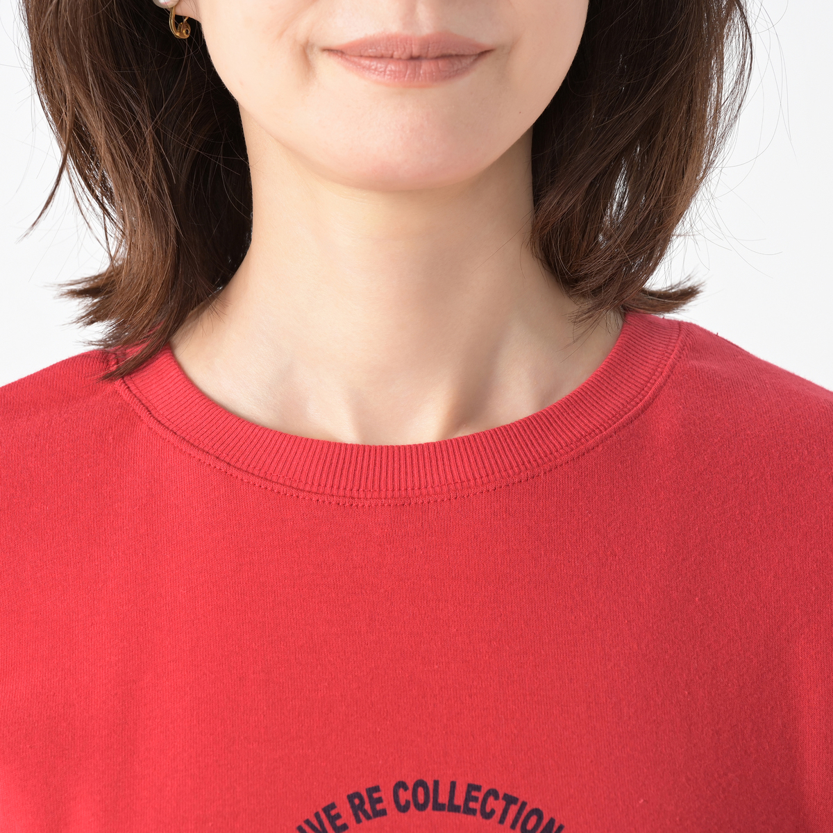 オフオワイトをウエイトリストでお待ちしていたのですが、期限が迫ってきても届く気配がなく、そのタイミングで私が欲しいサイズのオフオワイト以外が復活していたので、 レッドに交換していただきました。思ったより地厚で、コーディネートとしては極薄のトレーナーのイメージ。特徴カットにあるように、中に手持ちの白Tを入れてレイヤードで楽しむのもいいですね。別のデザインでレッドをいただいたのでちょっと迷いましたが、結果的にはレッドで良かった。
